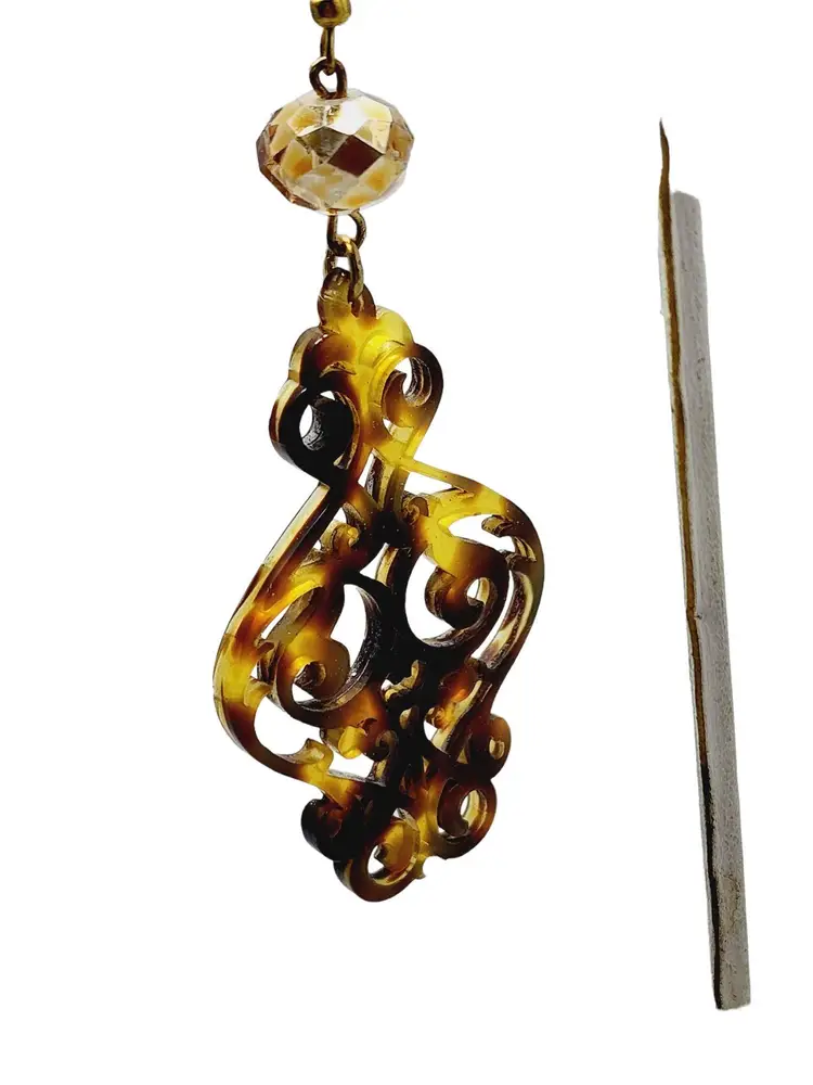 Vintage Lucite & Crystal Dangle Earrings (A1457)