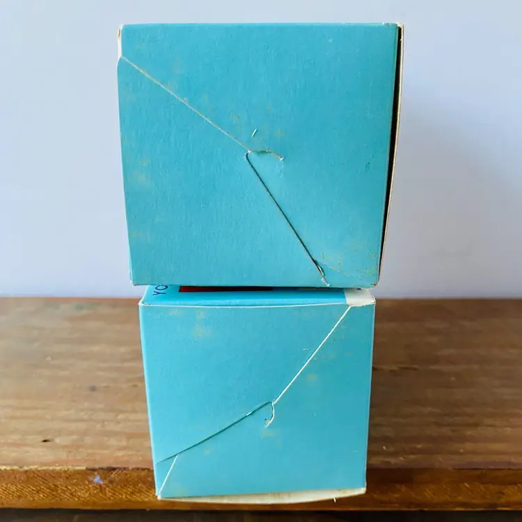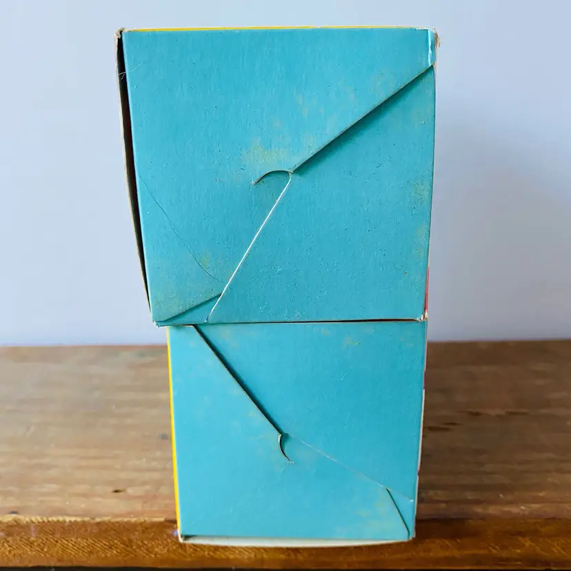The graphics on these boxes re fantastic! They measure 5"x2.5"x2.5". There is minor age related spotting.