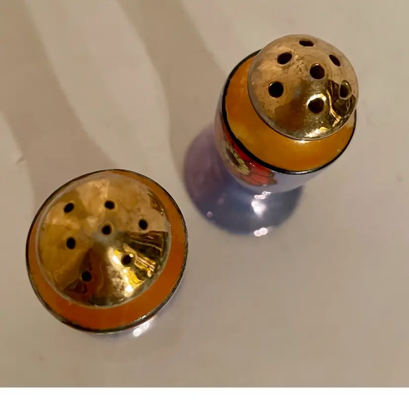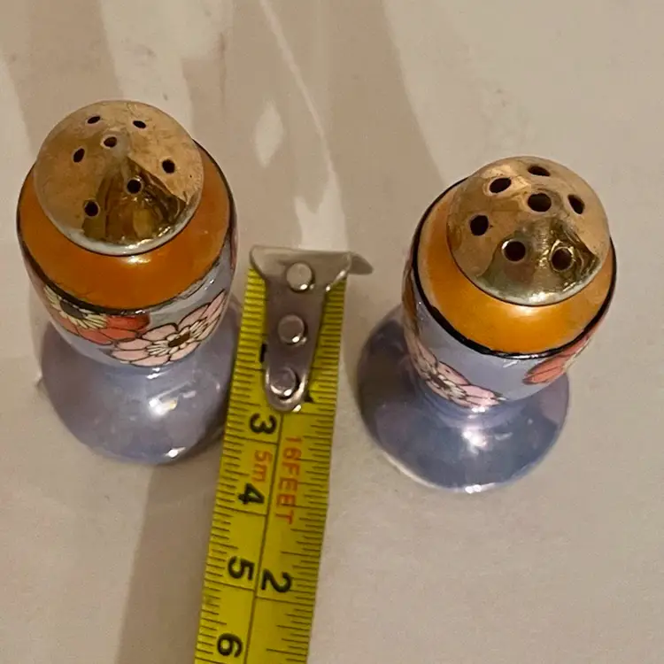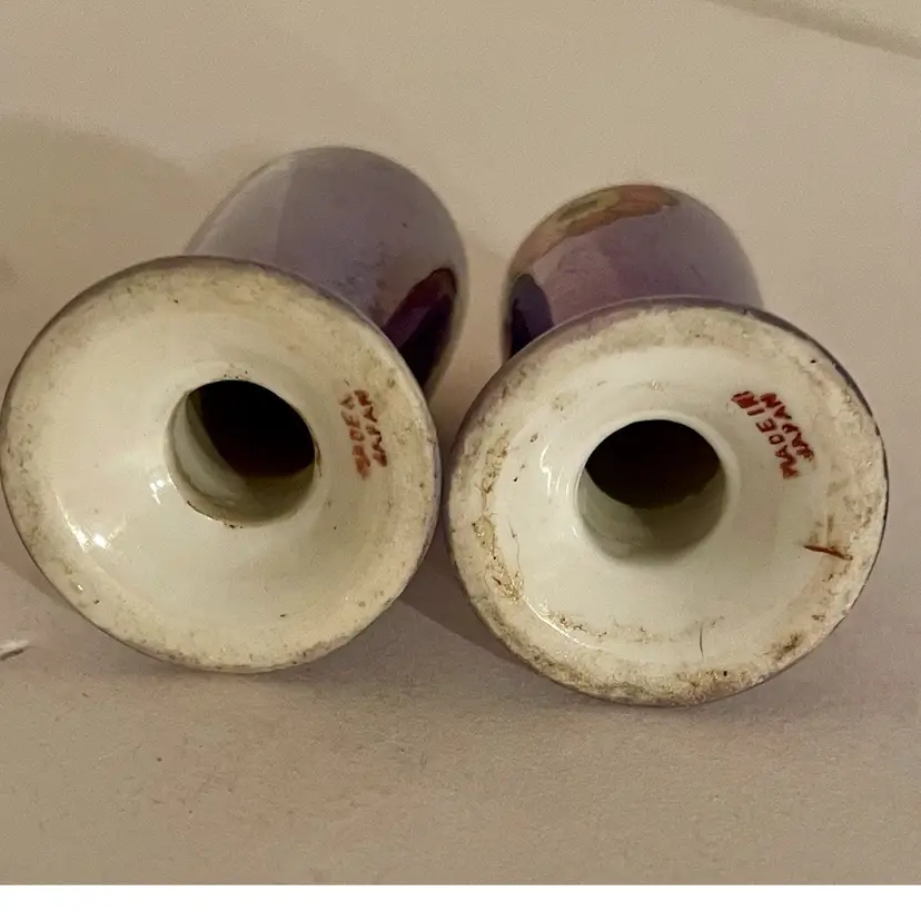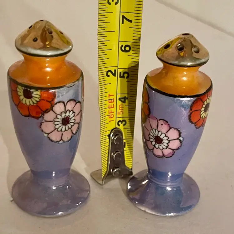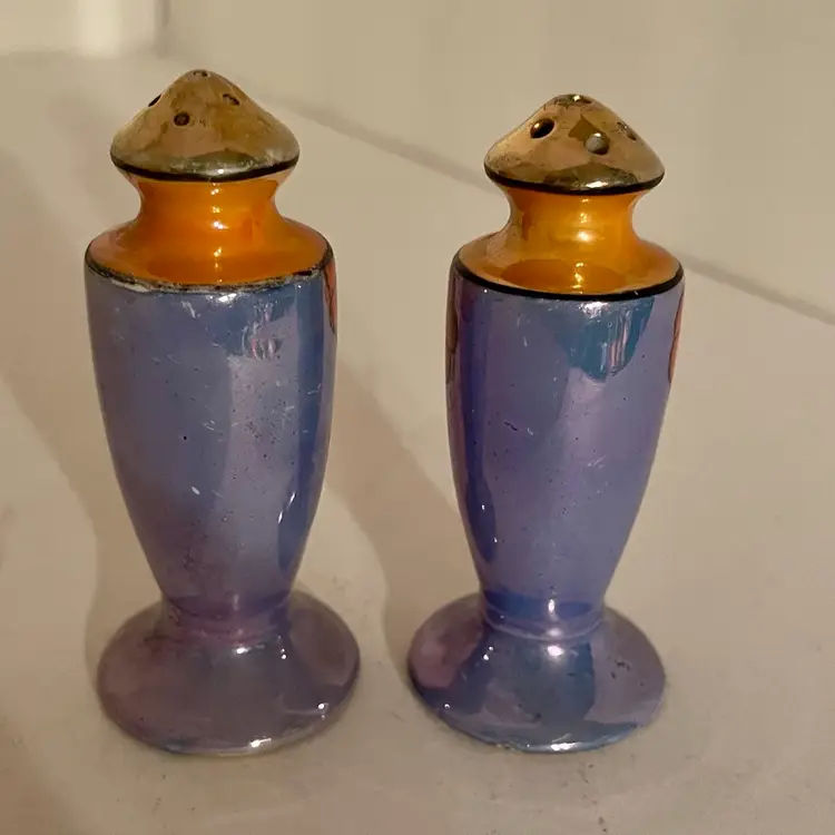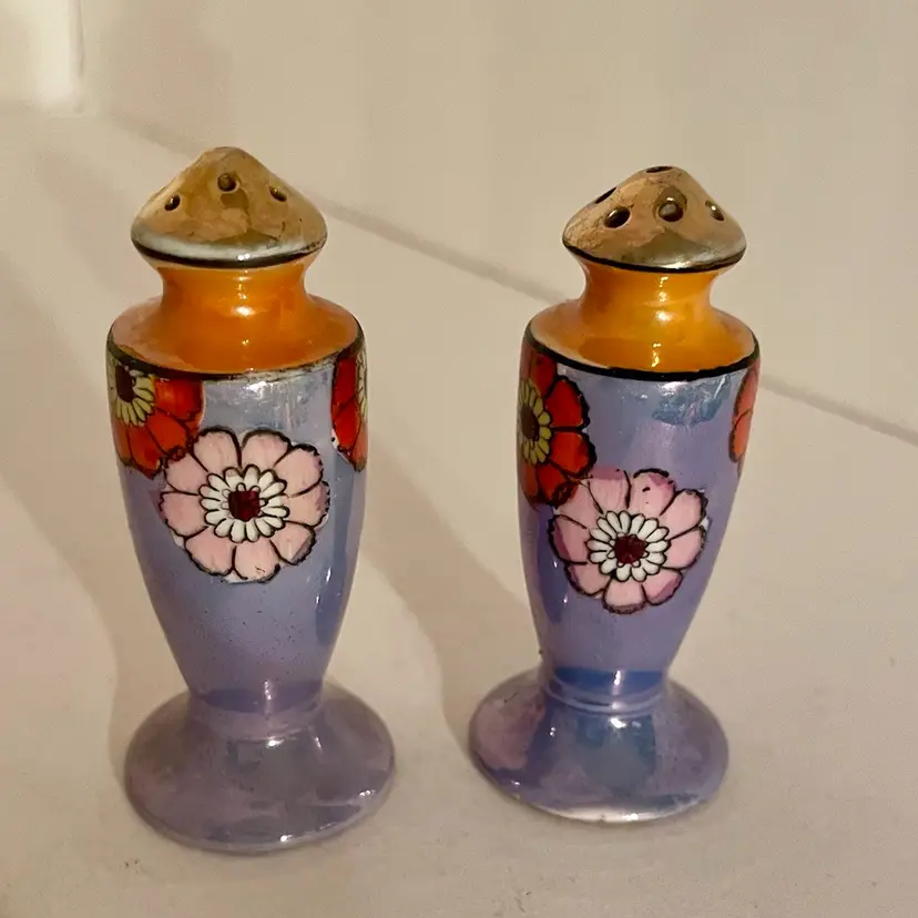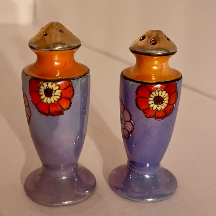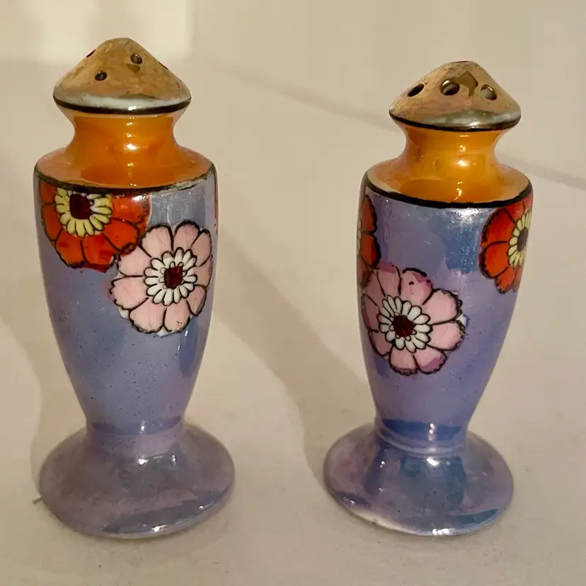 Vintage Lusterware Salt Pepper Shaker Blue Purple Floral Japan 3" High. Normal wear. See pics. No stopper. Condition is Used. Shipped with USPS Mail
