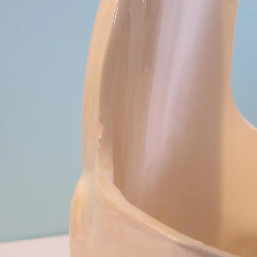 This lovely piece has a manufacturing chip on the back that was glazed over, still a nice piece to use and display. It is about 9" x 6 1/2" x 3 1/2". This is shipped from a smoke free home. Thanks for looking! locub67