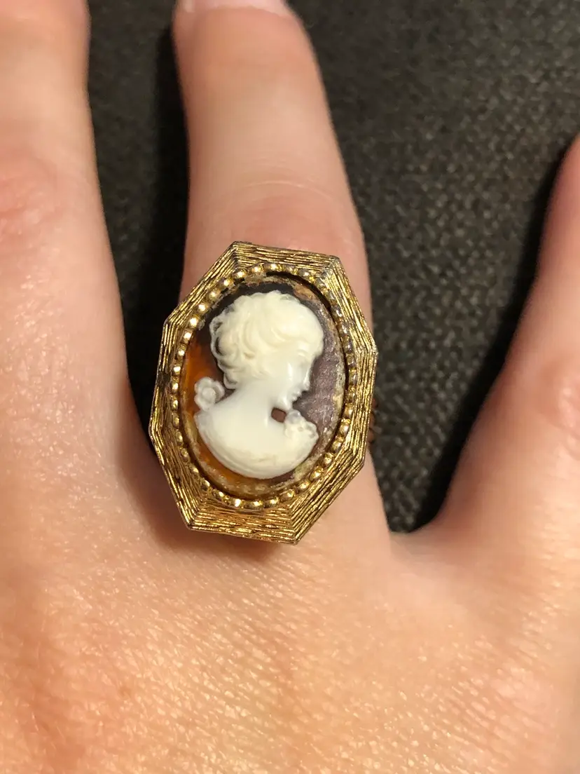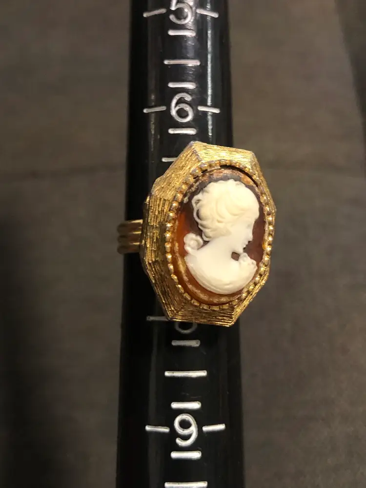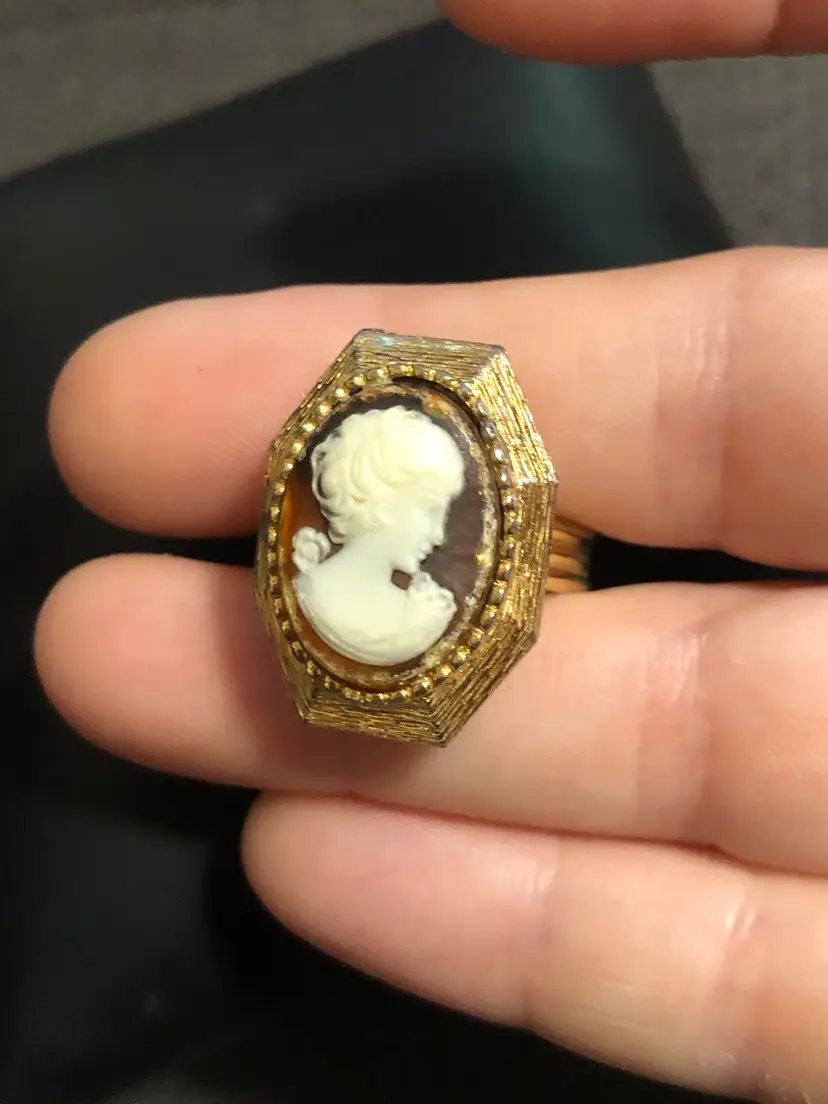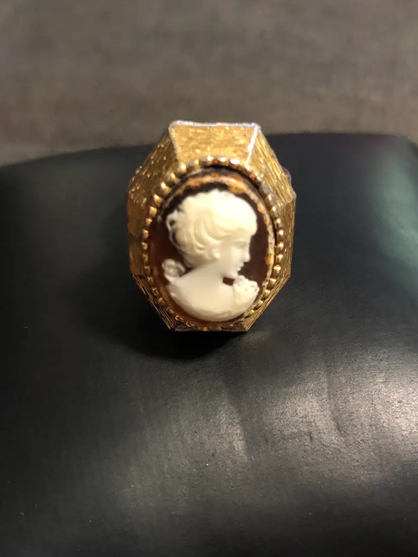 Vintage Luzier Cameo Solid Perfume Locket Adjustable Ring