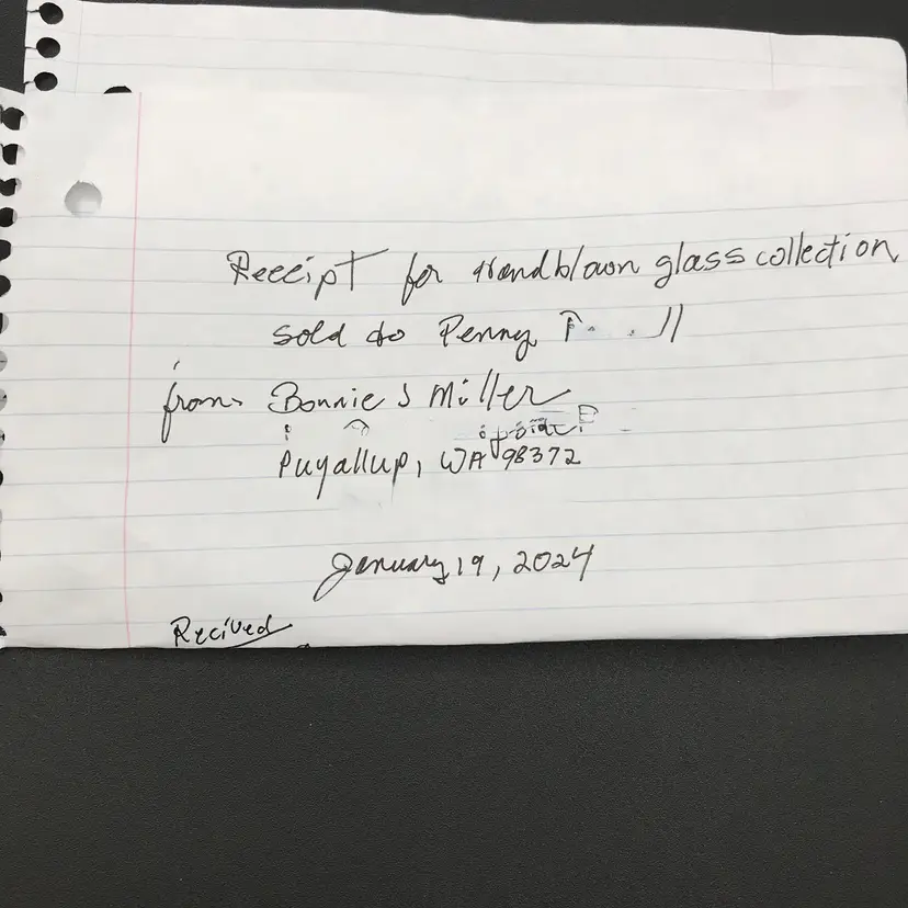 This is glass vase is from Bonnie Miller's collection from Puyallup, WA. She wrote a book called "Out of the Fire" of glass artists working in Seattle in the 1980 - 1990's.
