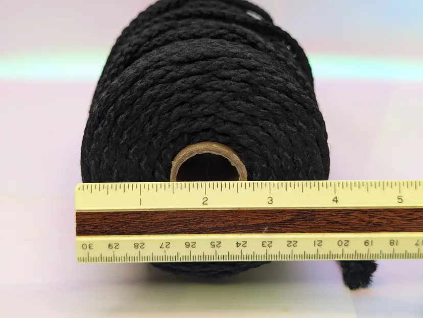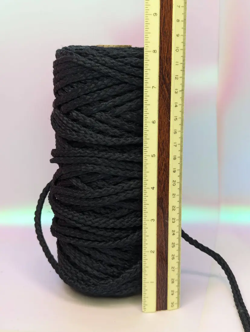 Vintage Macrame Cord Poly Black Spool 6mm gauge- I do not know how much is on the spool, Size looks to be around 6mm.Crafts Diy Sewing Yarn Hangers Easy Knotting, easy brushing, easy fluffing. Fade and rot resistant. This item is straight out of grandmas stash good, clean condition. Comes as shown, from a smoke free, smoke free home.