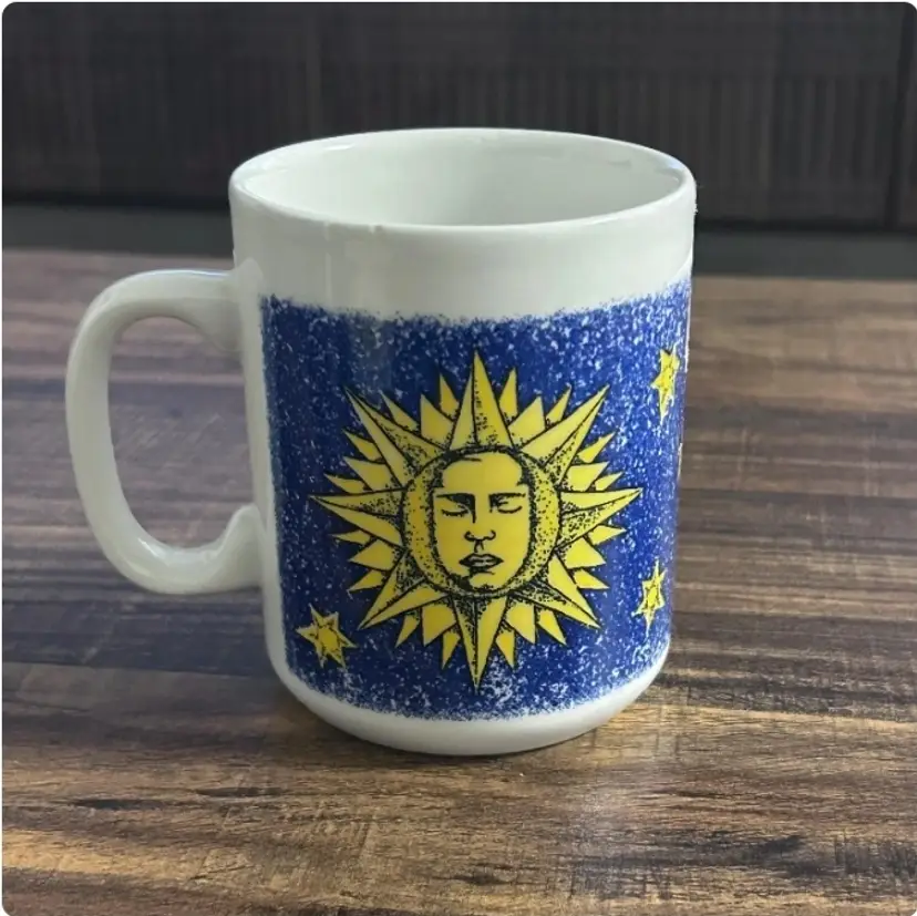 Vintage Made in Britain Celestial Sun Face Ceramic Coffee Mug