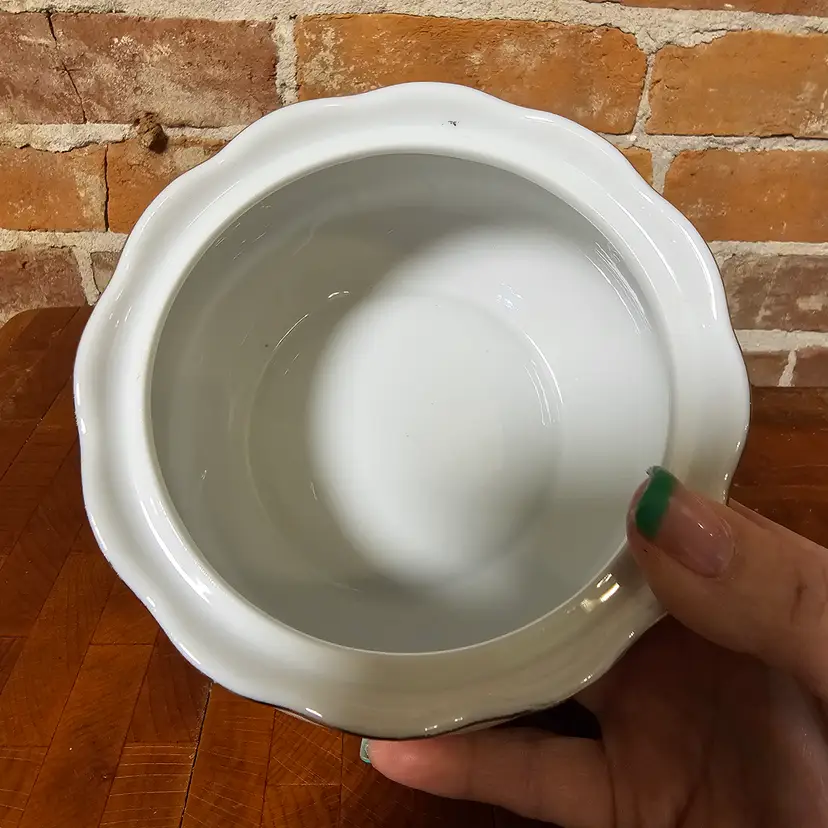 Measures approximately 4 inches tall, ideal for use as a sugar bowl, trinket dish, or repurposed as a small planter.