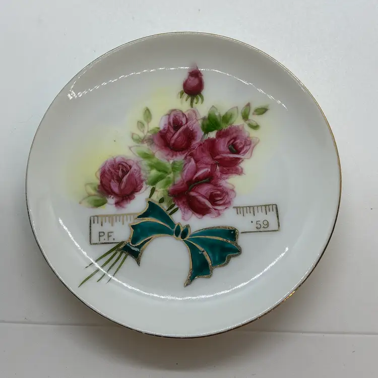 The Vintage Made In Japan Pearl Fairchild Club Trinket Dish is a round, original piece from the 1950s that features a beautiful floral pattern. This trinket dish showcases a design that pays homage to Chicago and was manufactured in Japan. This was my grandmother’s. Comes from a non smoking home.