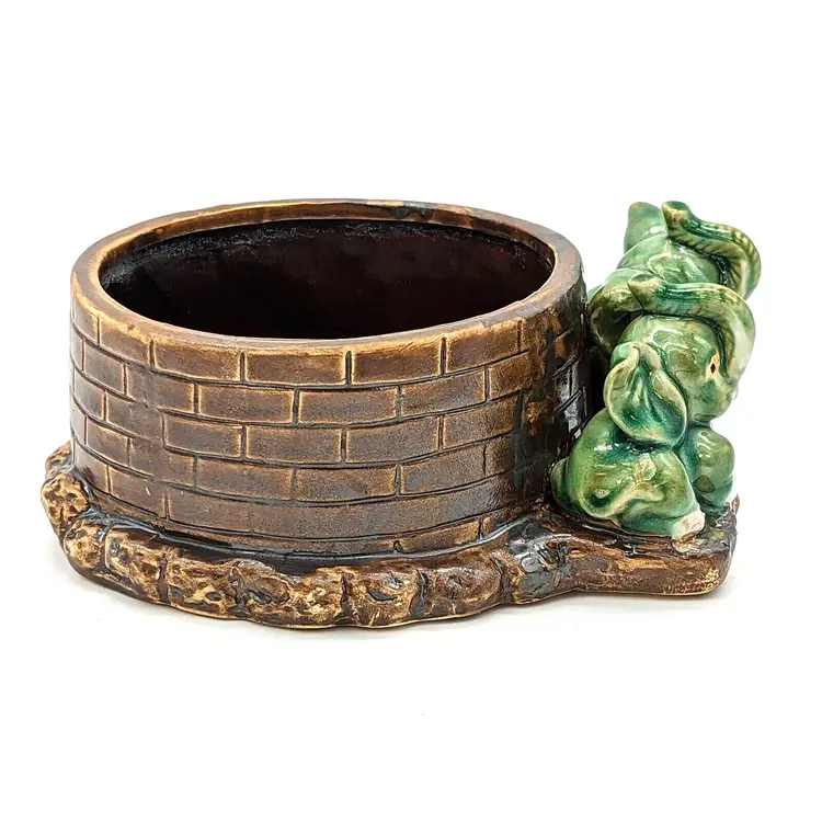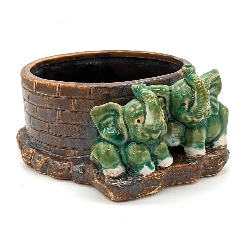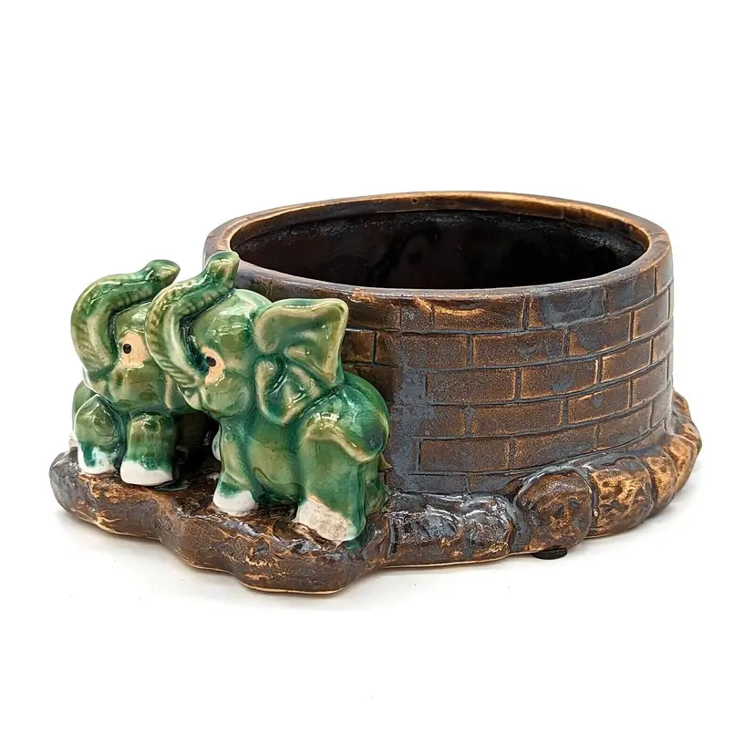 Vintage Majolica Lucky Elephant Planter Two Green Elephants Trunks Up China