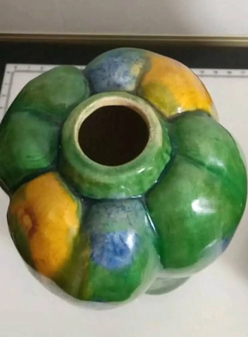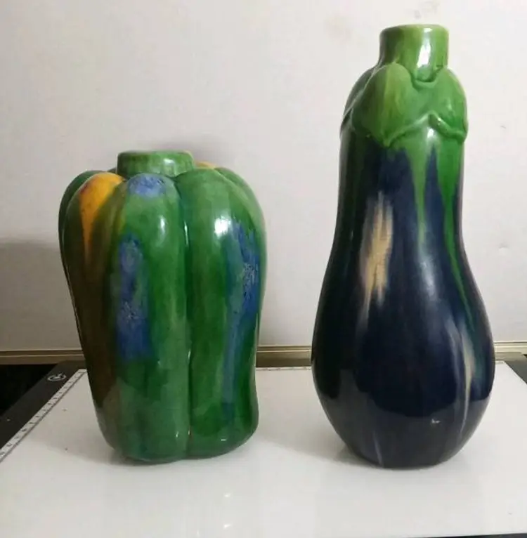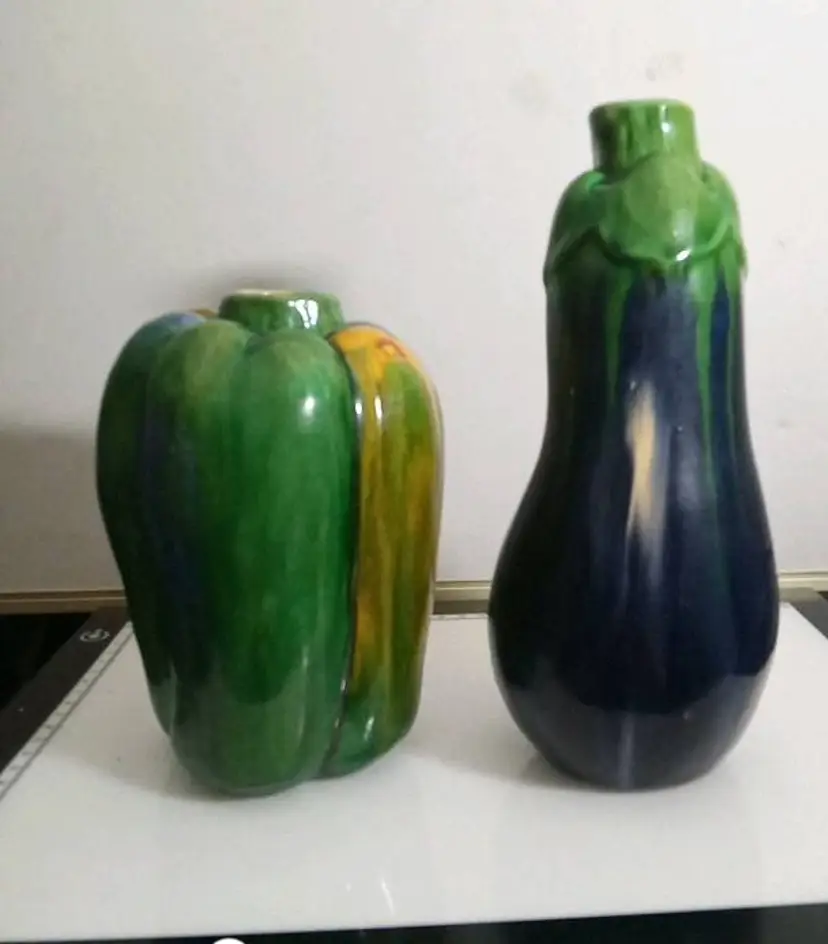 2 unique vases in shape of eggplant and bell pepper