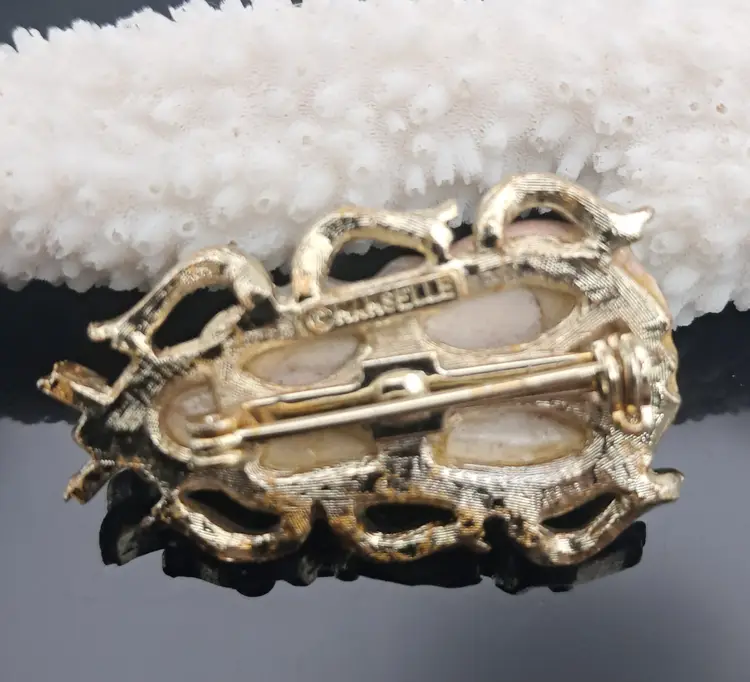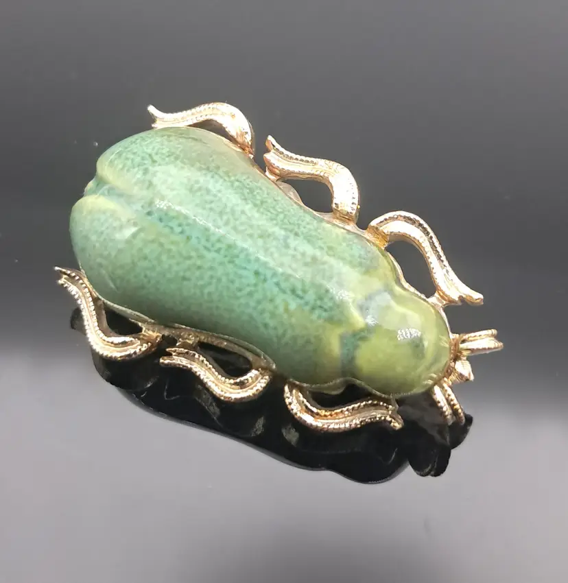 Signed pottery and goldtone pin. 1 1/2" long. Excellent.