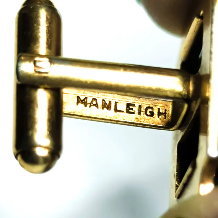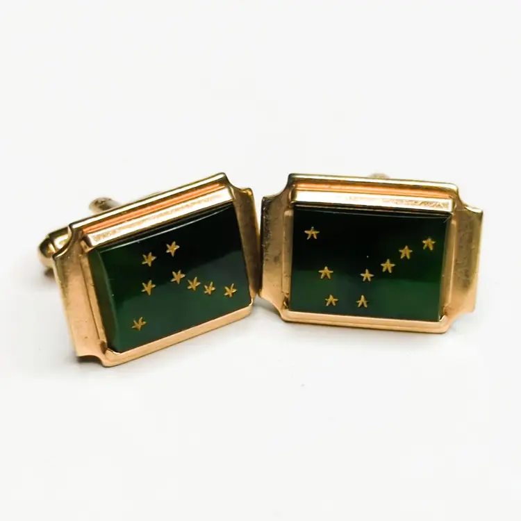 Vintage Manleigh Gold-Tone Green North Star Constellation Cufflinks. Condition is preowned. Classic vintage cufflinks by Manleigh, featuring a gold-tone finish with green and a star pattern of the Big Dipper and North Star. An elegant accessory for formal occasions. (FC03)