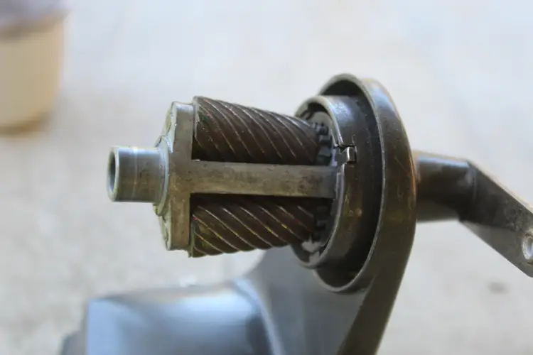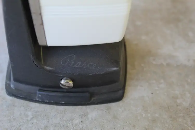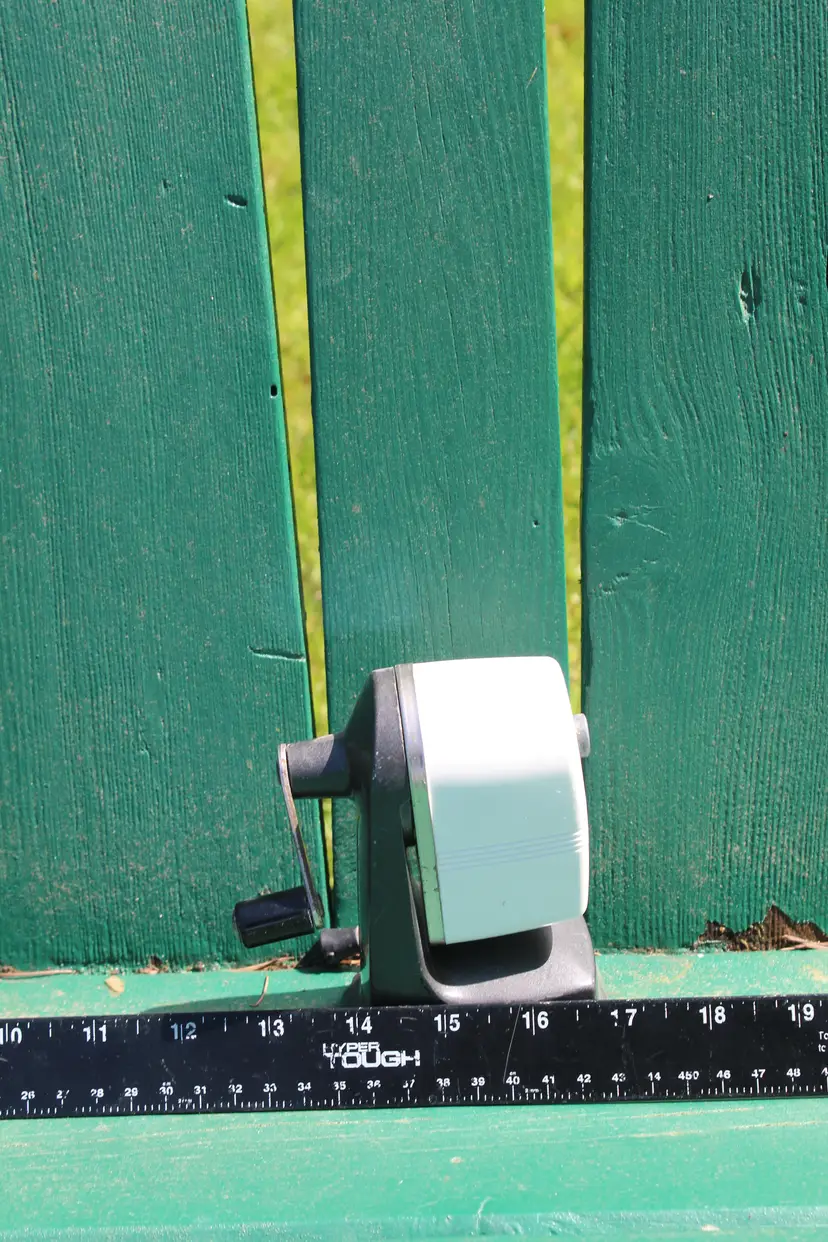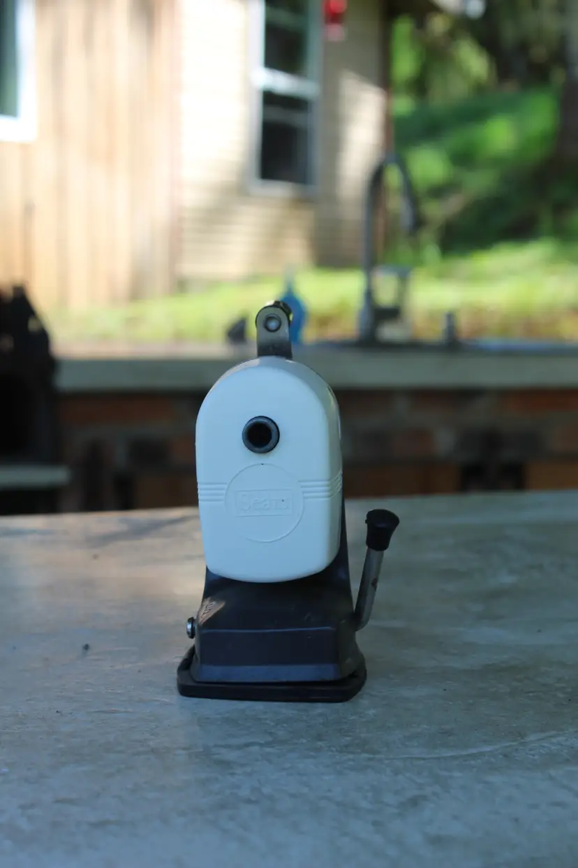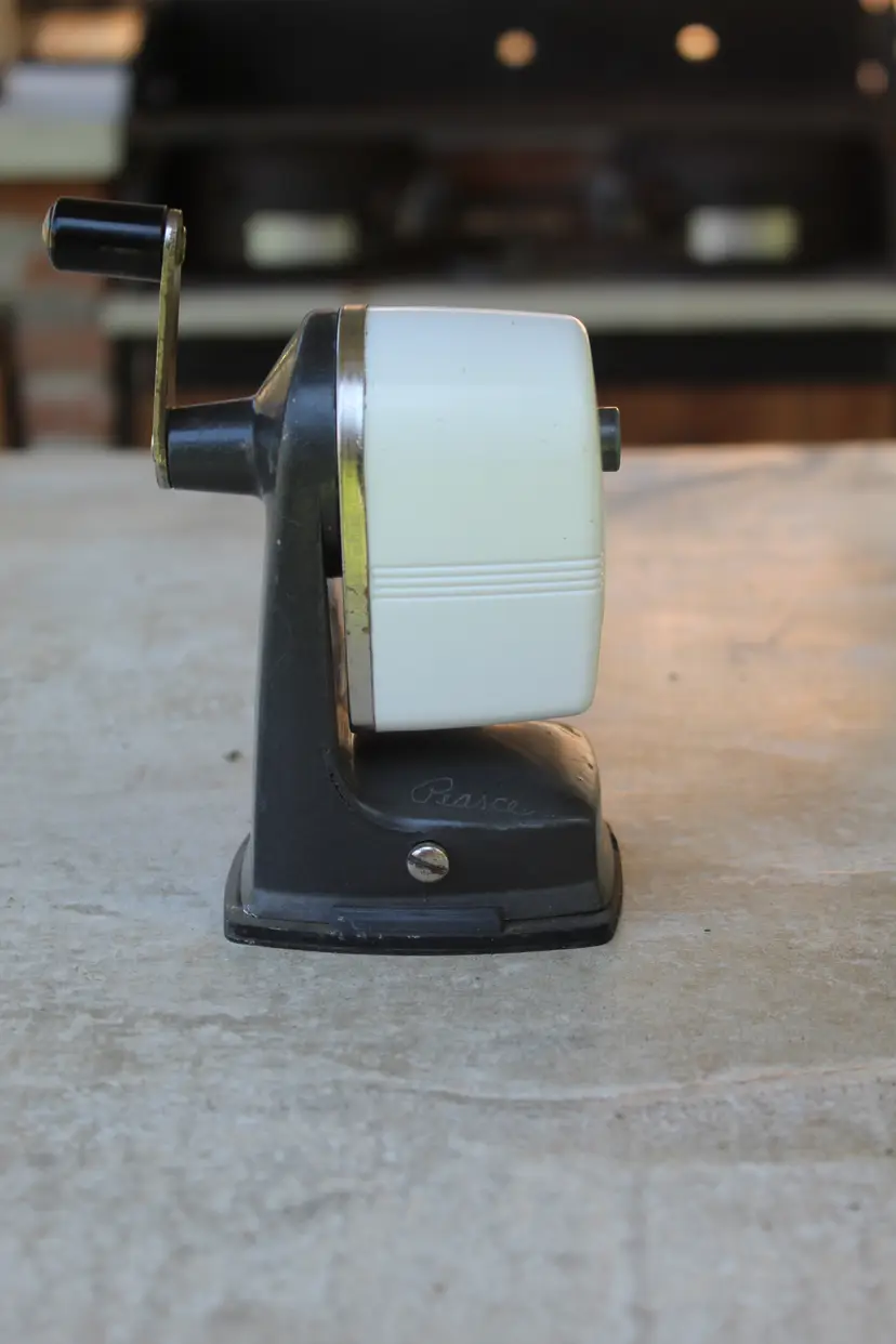 Vintage Sears Pencil Sharpener. Tested. Nice vintage Sears pencil sharpener in white. Some marks on the shell from previous use. Very clean overall. Normal vintage wear. Please look over the photos. Please refer to the condition description for more info. Any and all measurements taken are approximate. This was an estate sale find and the previous owner must have engraved their name on the bottom of it.