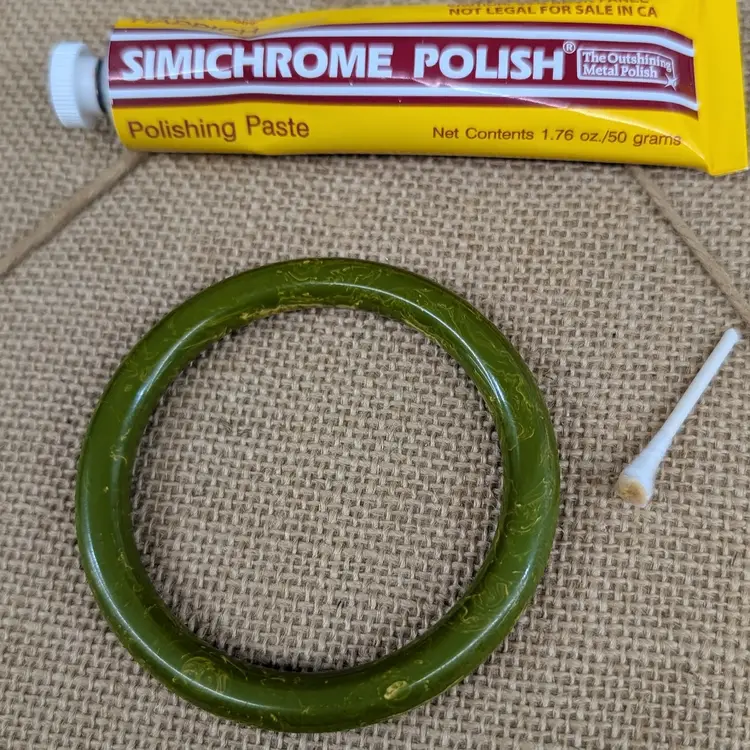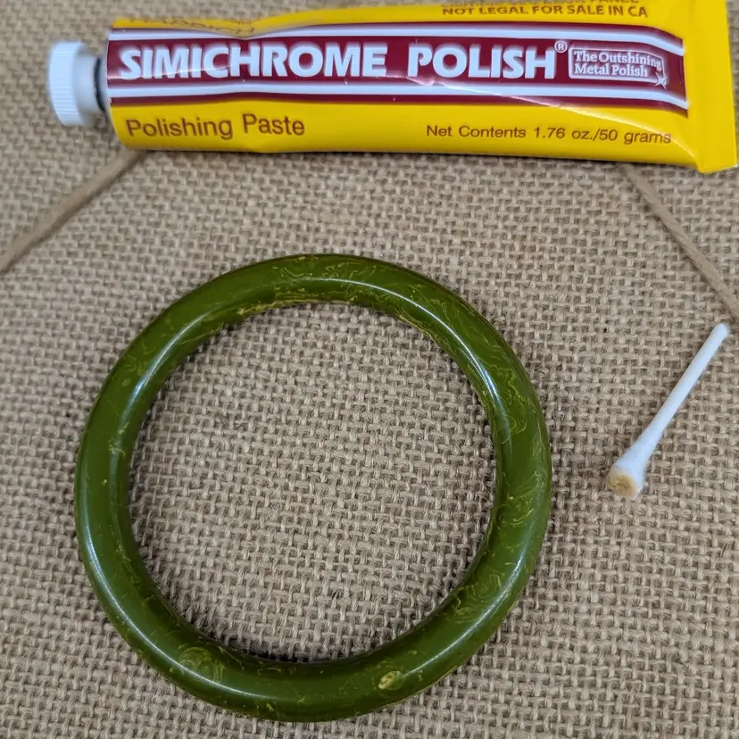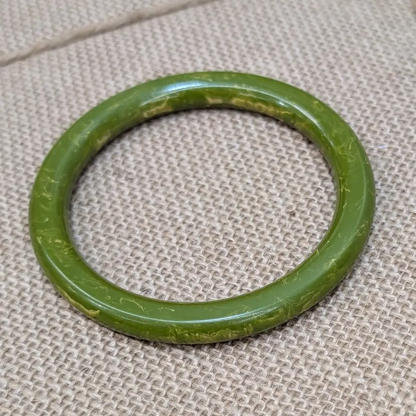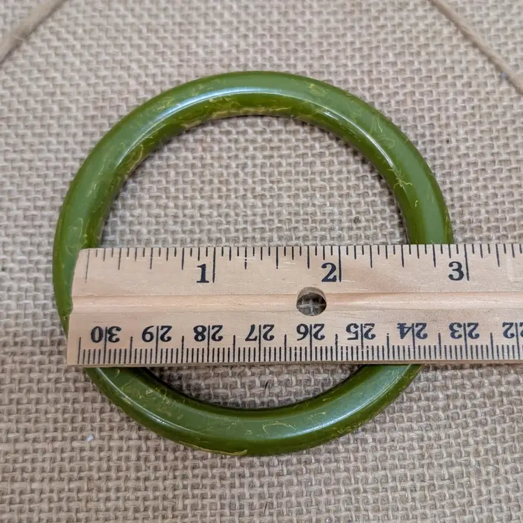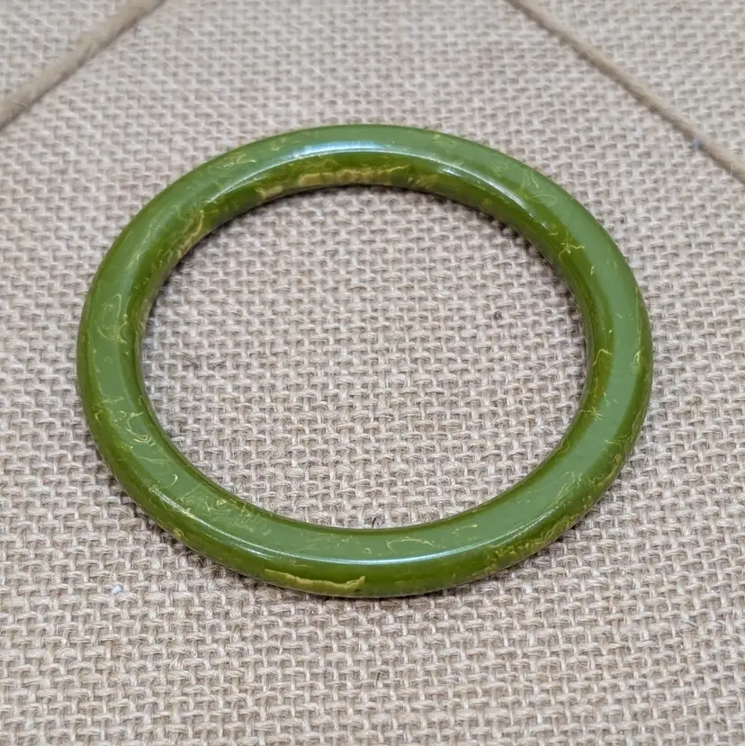 What great marbling in this bangle! I have a yellow one that is the same width that would be great to stack together that is listed separately. Measurements ~ 2.5" opening and 5/16" wide