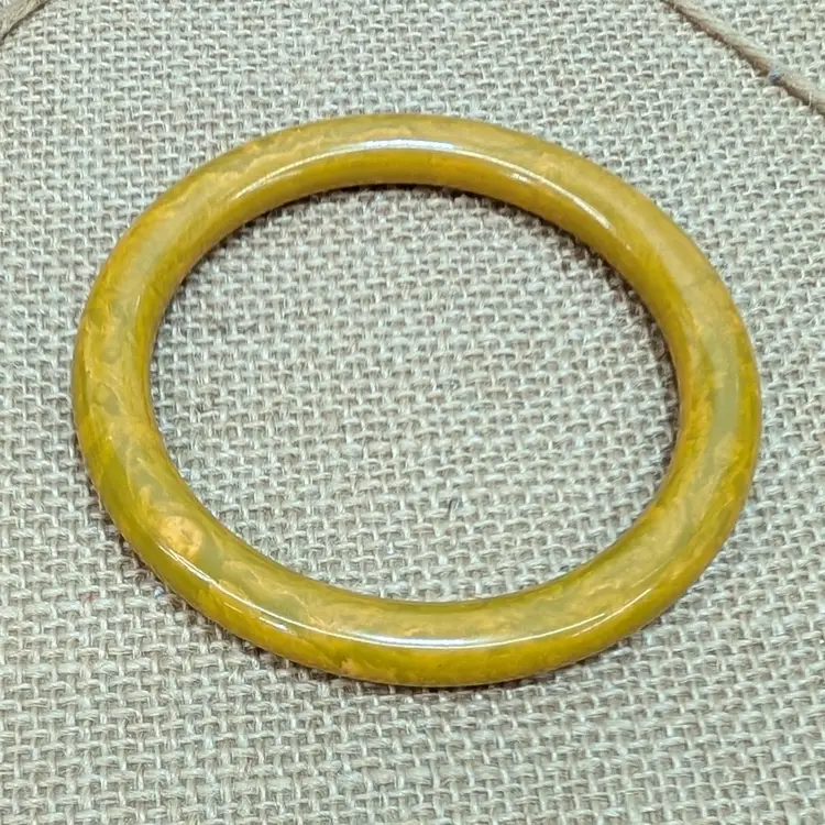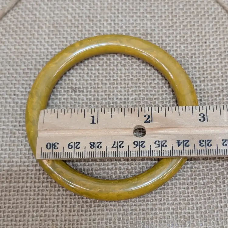 What great marbling in this bangle! I have a green one that is the same width that would be great to stack together that is listed separately. Measurements ~ 2.5" opening and 5/16" wide