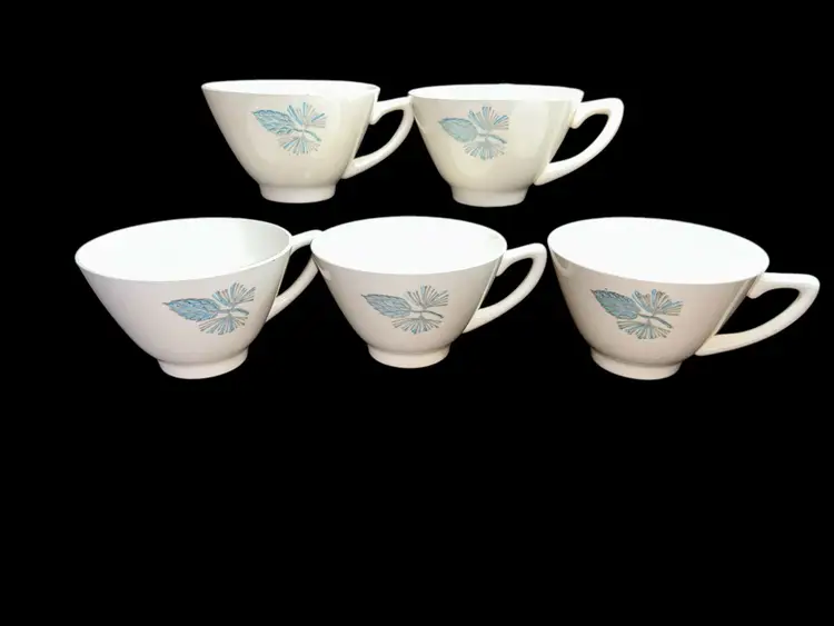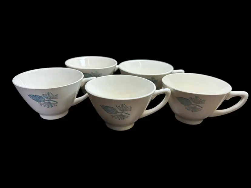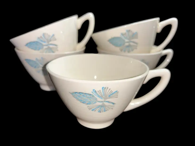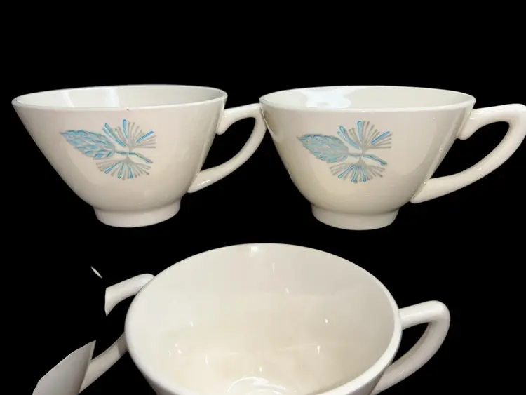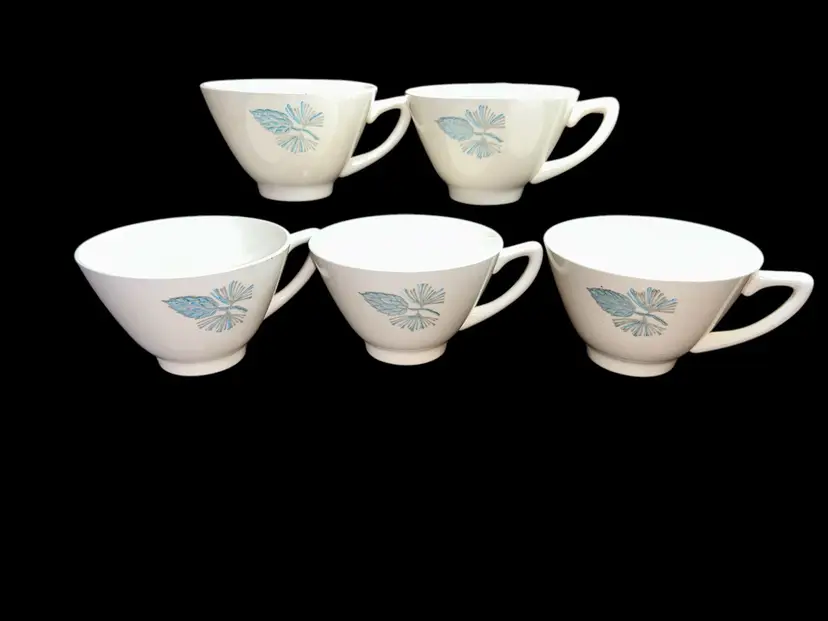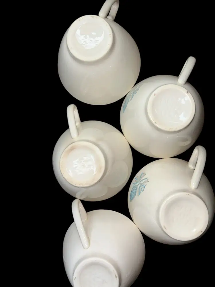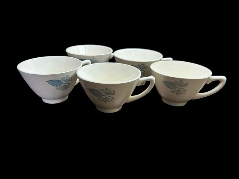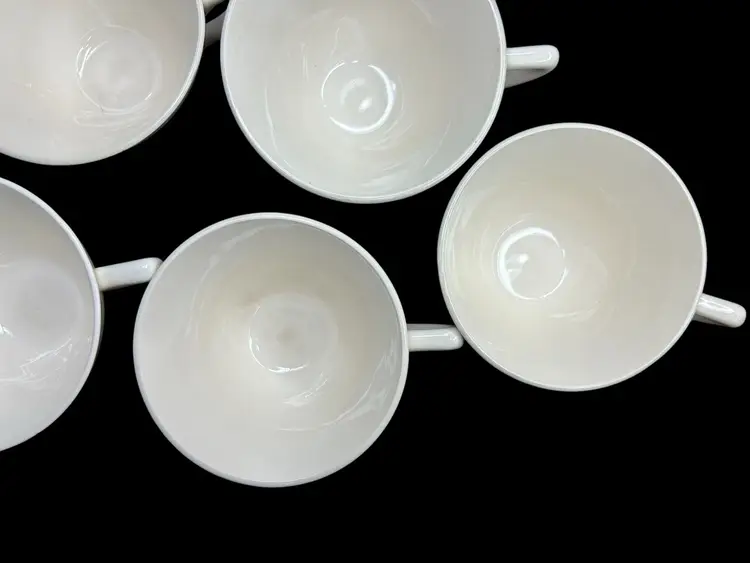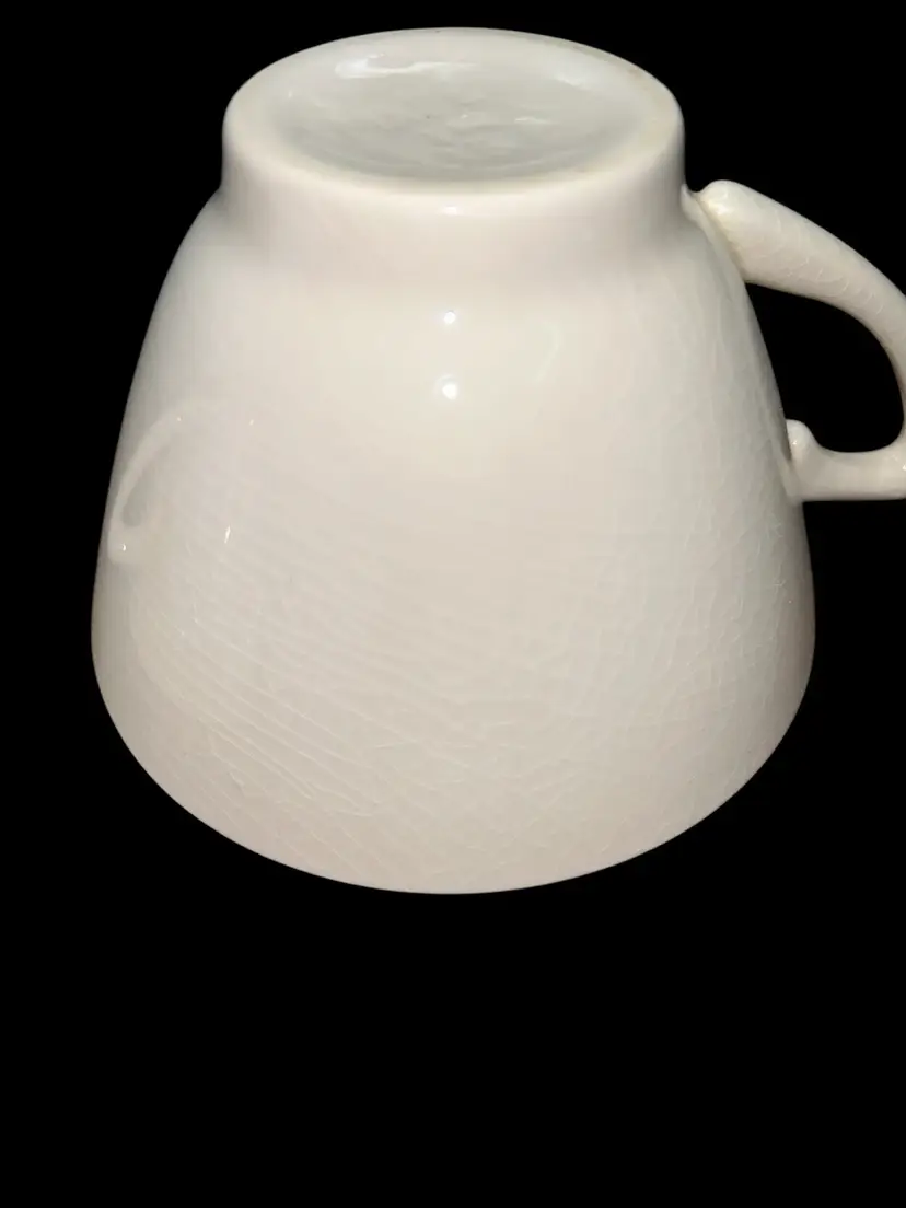 2.4” tall; 4” diameter. No chips or cracks. Most cups have some crazing and a couple are slightly discolored. Shown in photos.