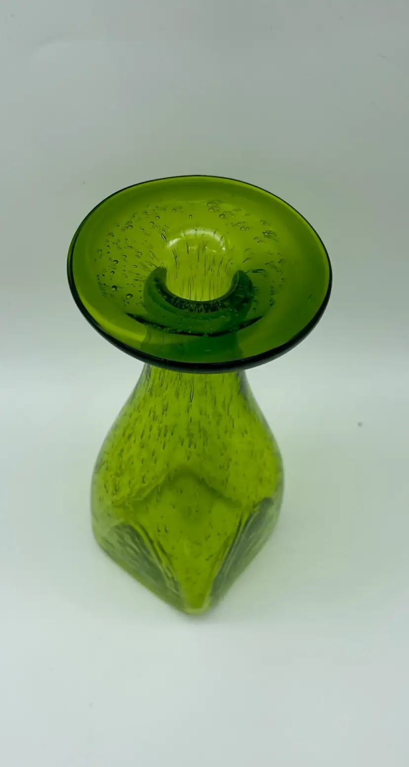 Excellent pre-owned condition. No chips, cracks or blemishes. No marking of signature found. Dimensions: 8"h x 3" square at base. Rim diameter 3"
