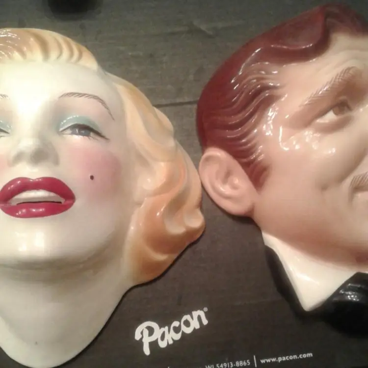 Two Vintage(1981) clay/porcelain masks of Marilyn Monroe and Clark Gable. 10" by 10". Excellent condition! No chips, cracks or lost paint