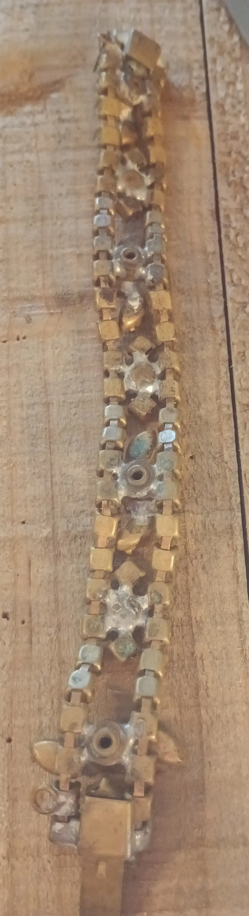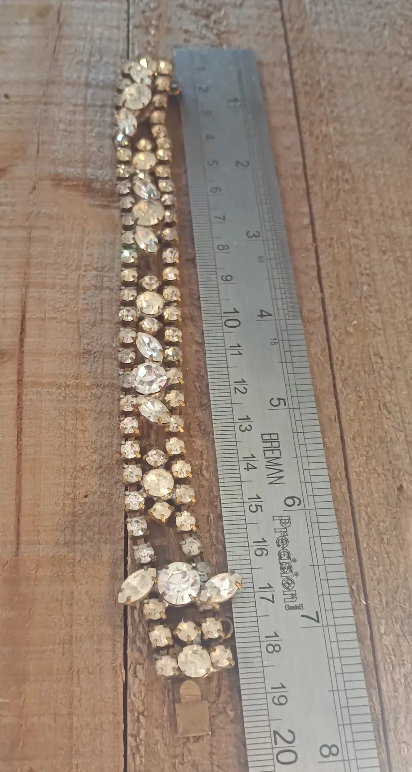 You will receive one vintage rhinestone bracelet marked Ann Vien. Ann Vien was a costume jewelry designer in Atlanta during the 1940/50s. This bracelet measures approximately 8 inches with a push in clasp. There is some tarnish to the back but otherwise in great vintage condition. Please let me know if you have any questions.