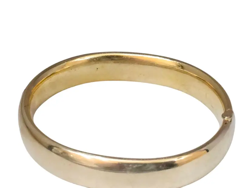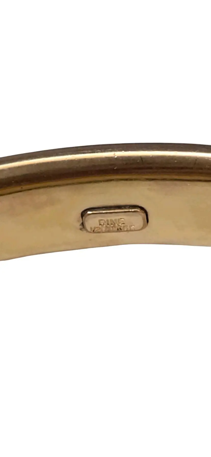 Size: Inner diameter 2.5" x .50" wide Color: Gold Condition: Very good vintage; a little darkening at the front Signed: Rine