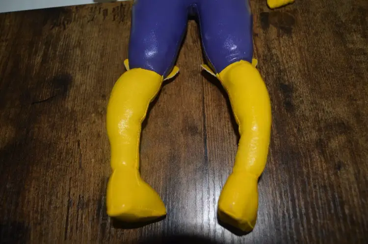 The only blemish is some discoloring under the boot near the knee (see photos).