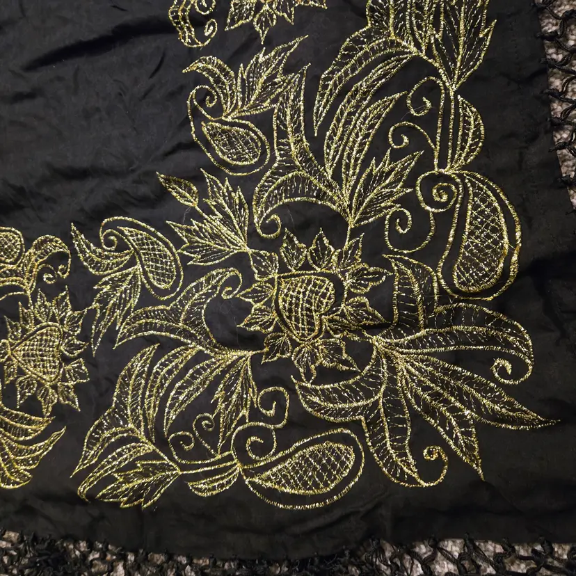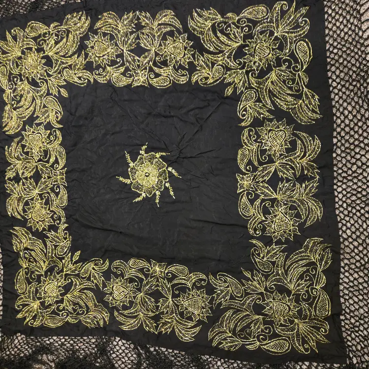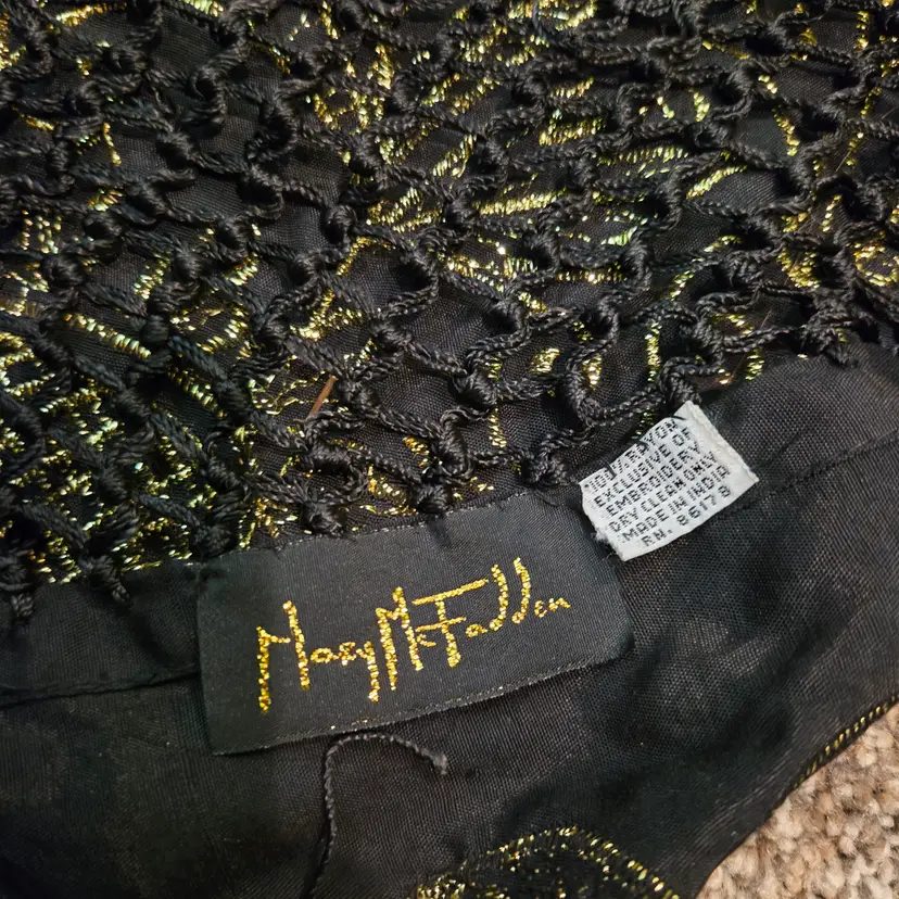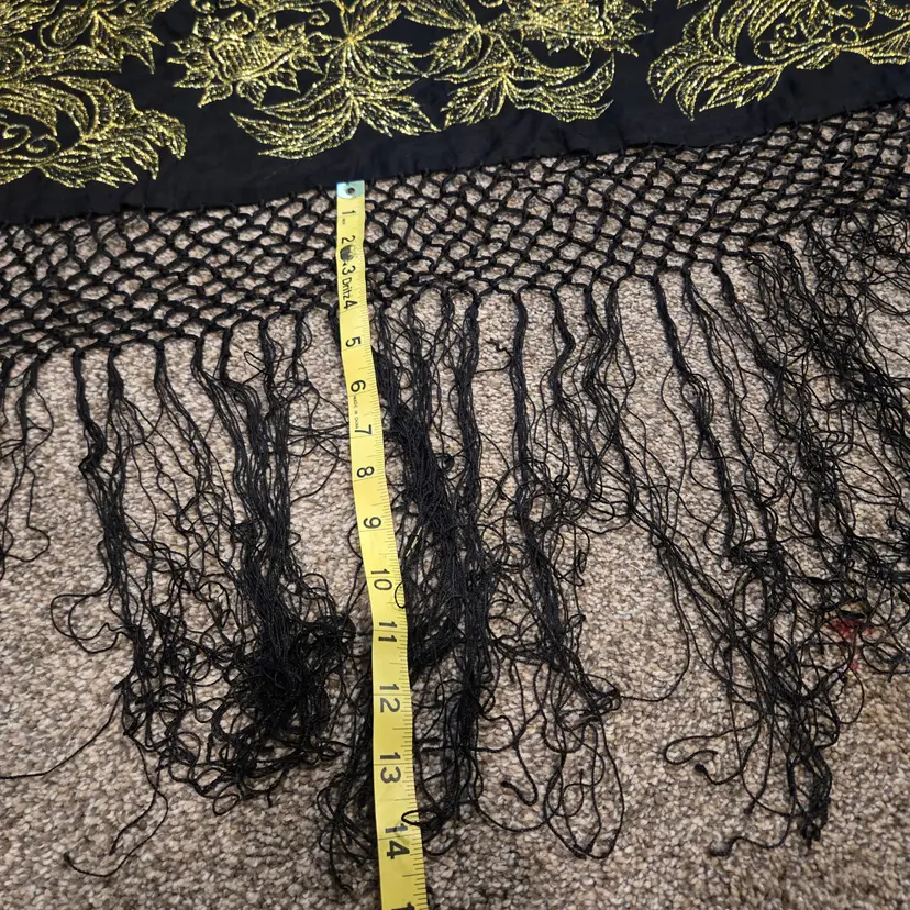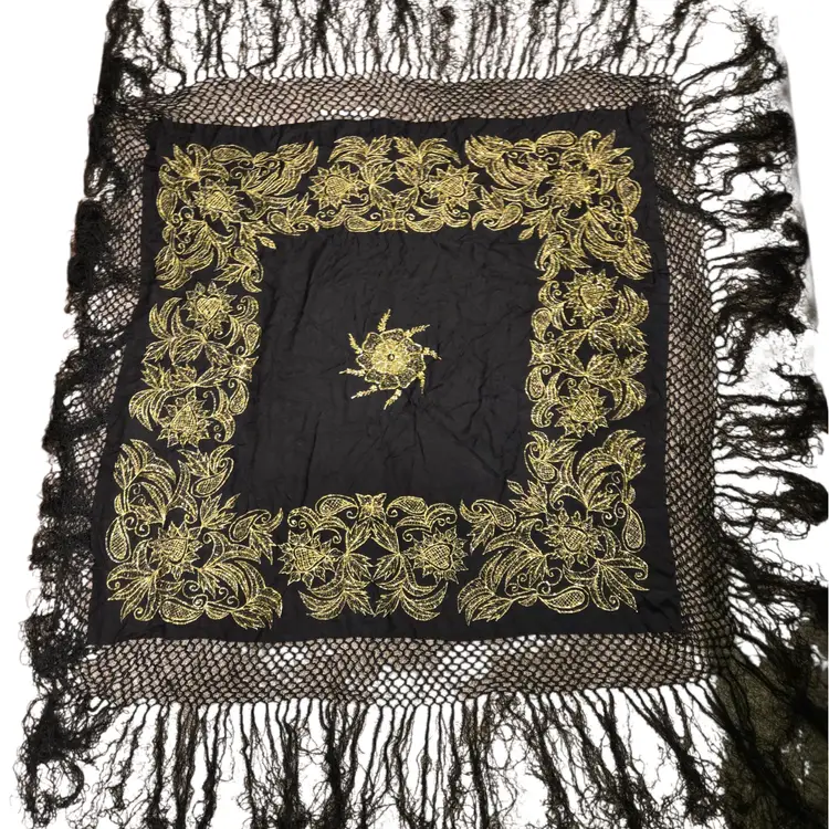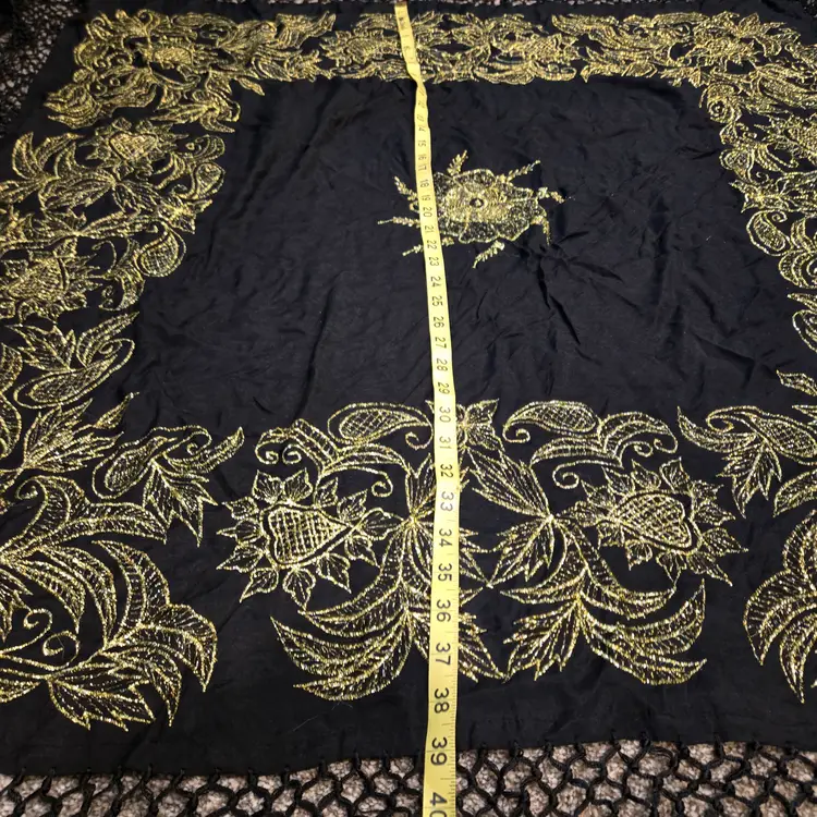 Vintage Mary Mcfadden Square Black/Gold Piano Shawl Tassel Fringe 39"x39" Tassel