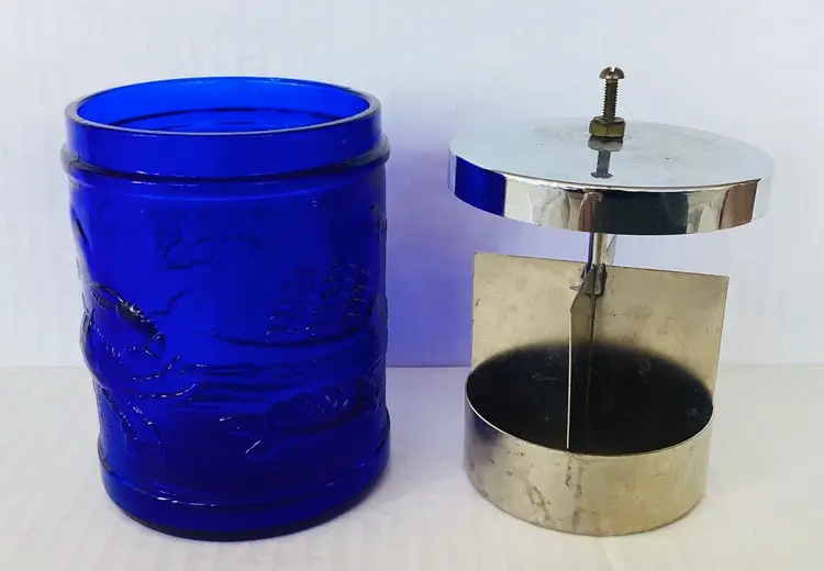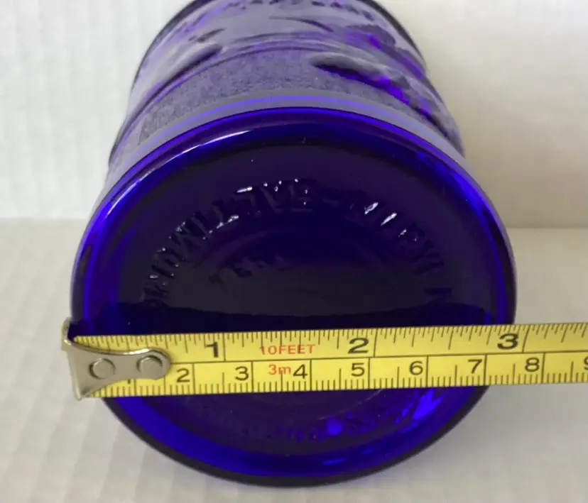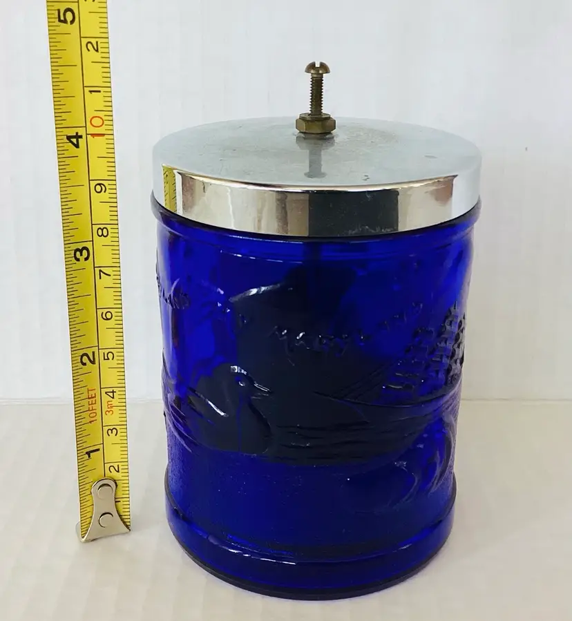 This blue beauty is missing its ‘finial’ on the lid, but other than that it is exceptionally good condition. I have examined it and do not see any cracks, scratching or chips which is remarkable. I have tried to capture everything in the photos, but if you have any questions, please message me.