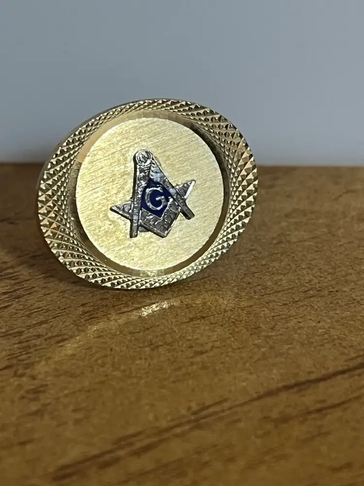 Details are beautiful on this single cufflink. Masonic symbol well detailed with the blue background.