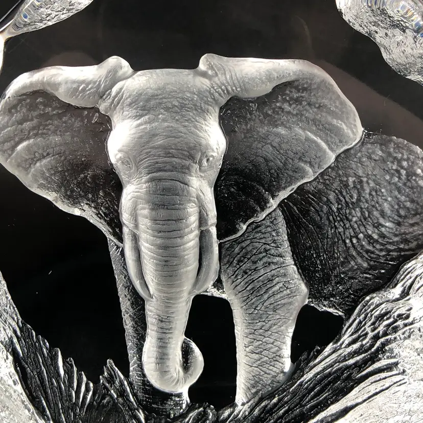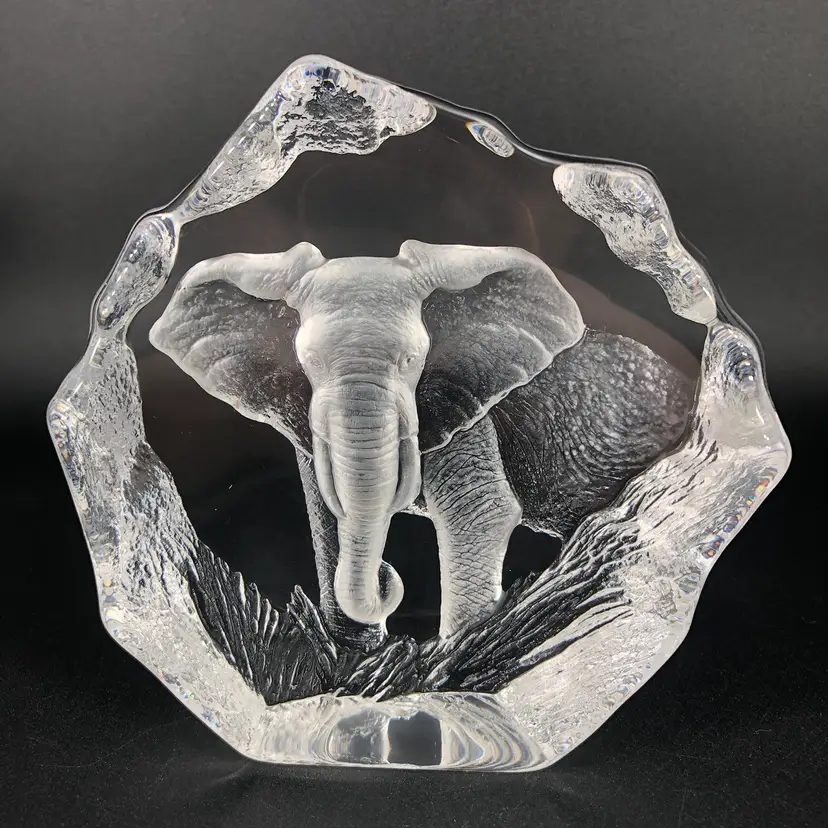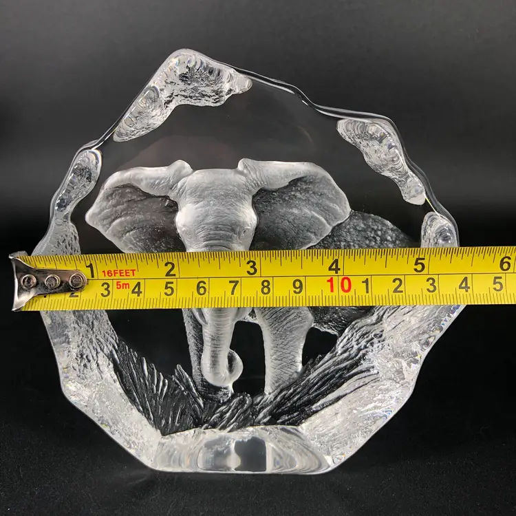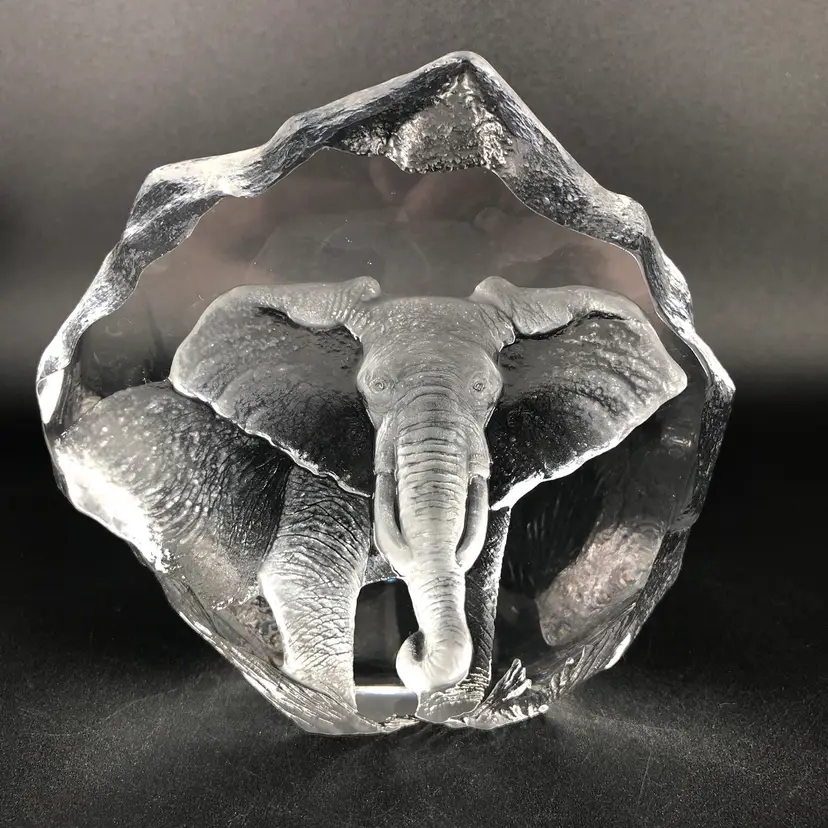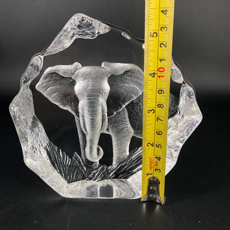 Vintage Mats Jonasson Sweden Elephant Crystal Paperweight