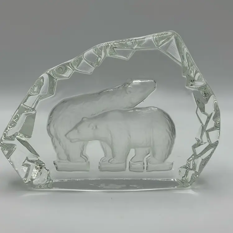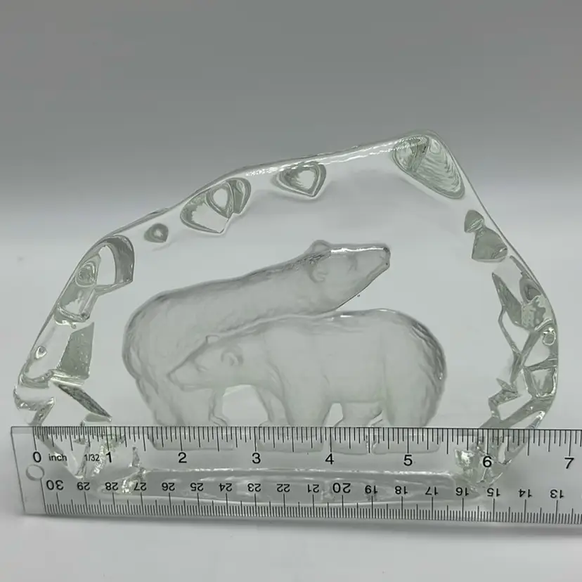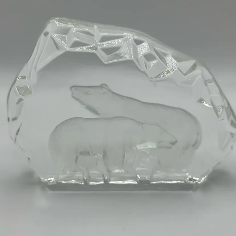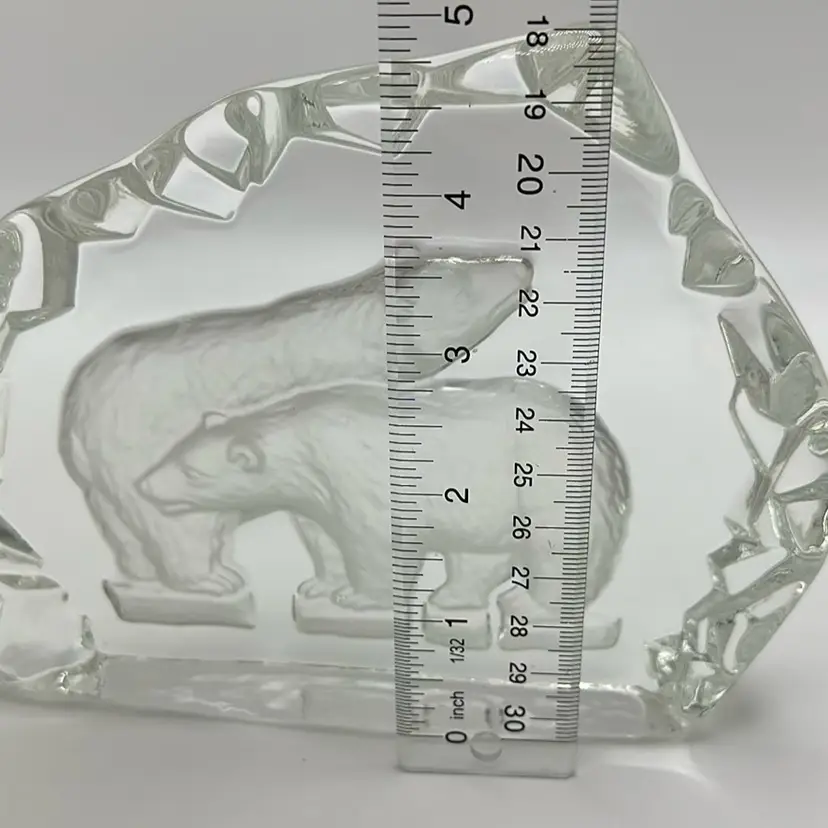 Vintage Mats Jonasson Swedish Engraved Crystal Polar Bear Paperweight. Unsigned. Mid Century 1960s. Heavier Paperweight - Weight 2 pounds 5.8 ounces. No chips No cracks. One scratch on bottom of piece.
