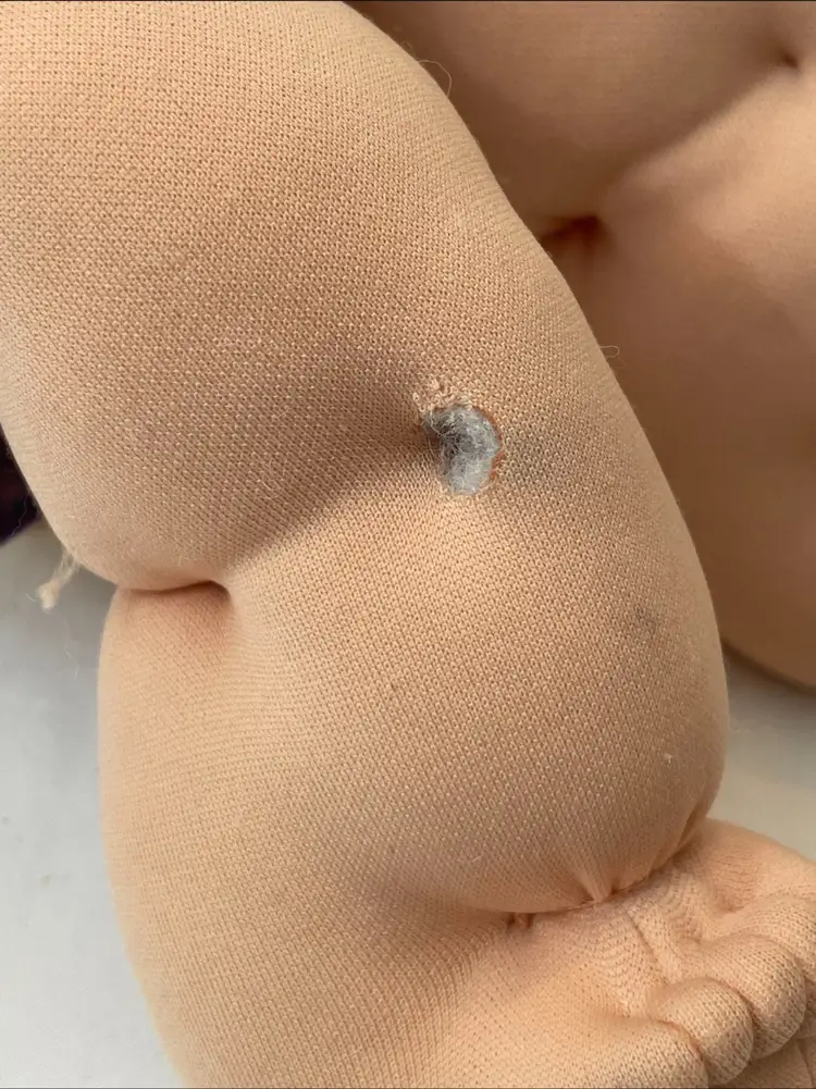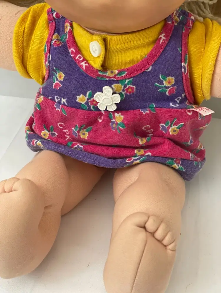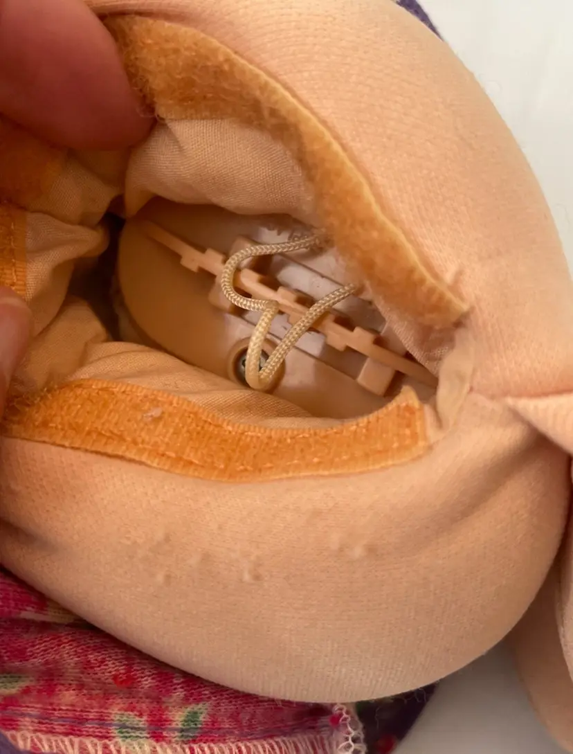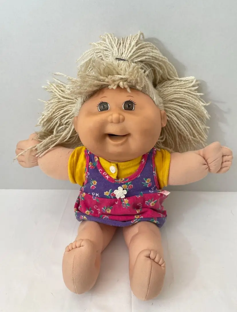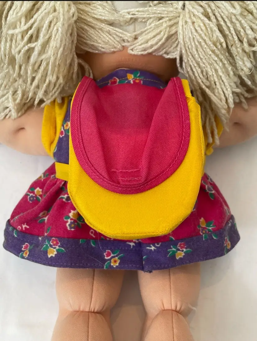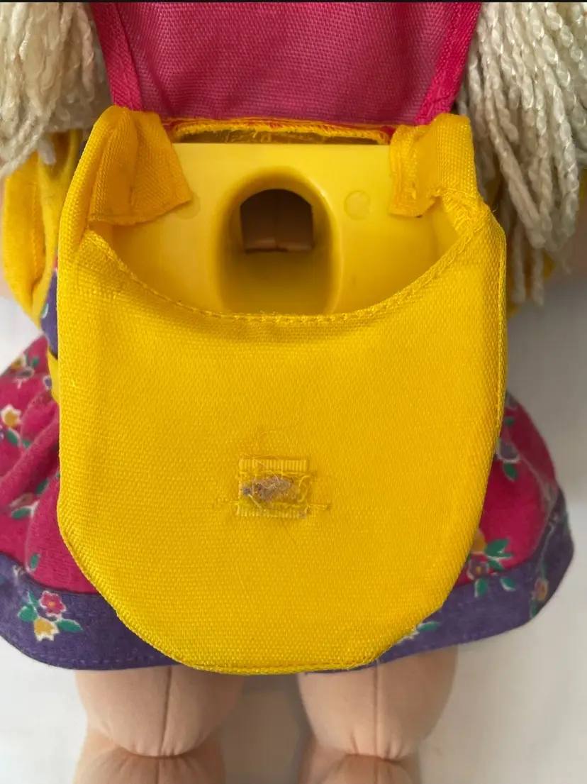 Rare and hard to find vintage 1995 Mattel Cabbage Patch Kids “Snacktime Kid”. This item was recalled and is now hard to find. The electrical mechanism for the doll to chew is not working. I have replaced the batteries with no luck. There is a small hole in one of her legs also. No food accessories are included but she does have her original clothes and backpack. Please see photos.