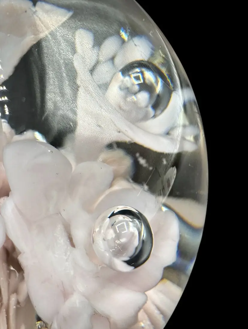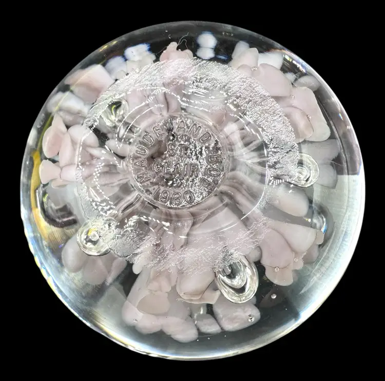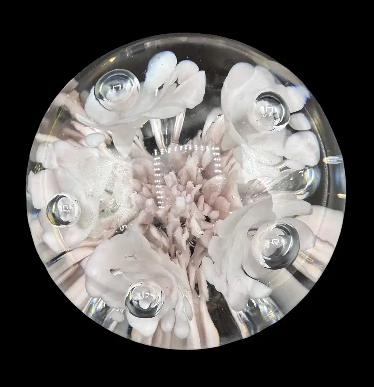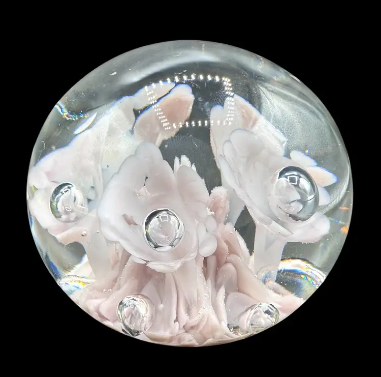 St Clair paperweight with very pale pink flowers.