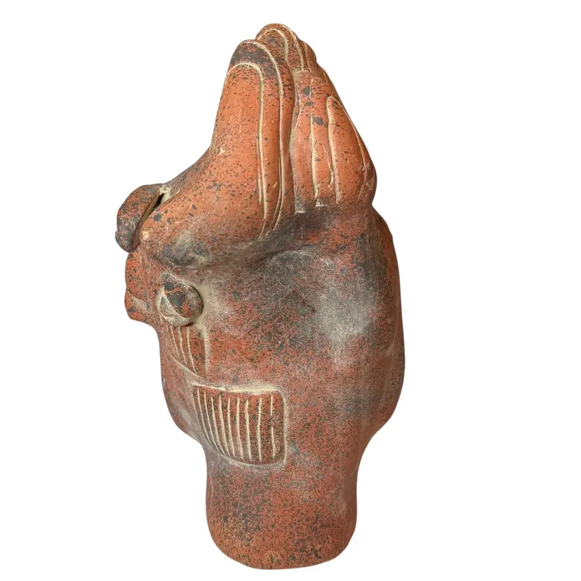 Beautiful detailed terracotta red clay 12” tall statue