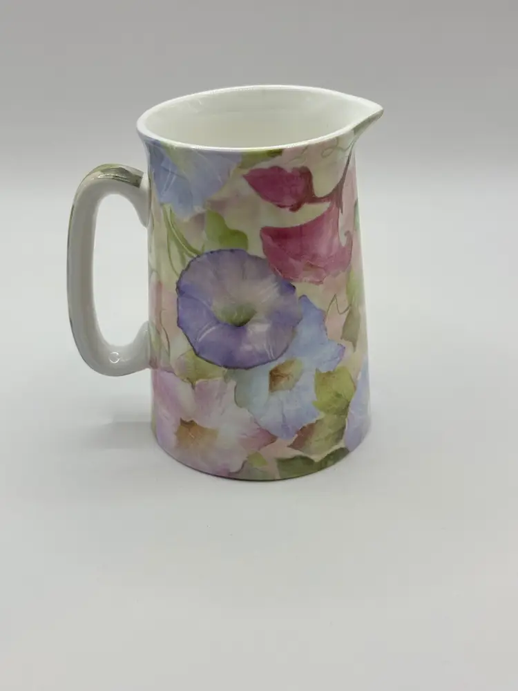 Add a touch of spring to your home with this charming vintage floral fine bone china pitcher creamer. Featuring “Mayfair” pattern a delicate pastel watercolor design, it's perfect for displaying fresh flowers or serving your favorite beverages. In excellent condition with no chips or crack. Measures 4x4x3. Weighs 1lb.