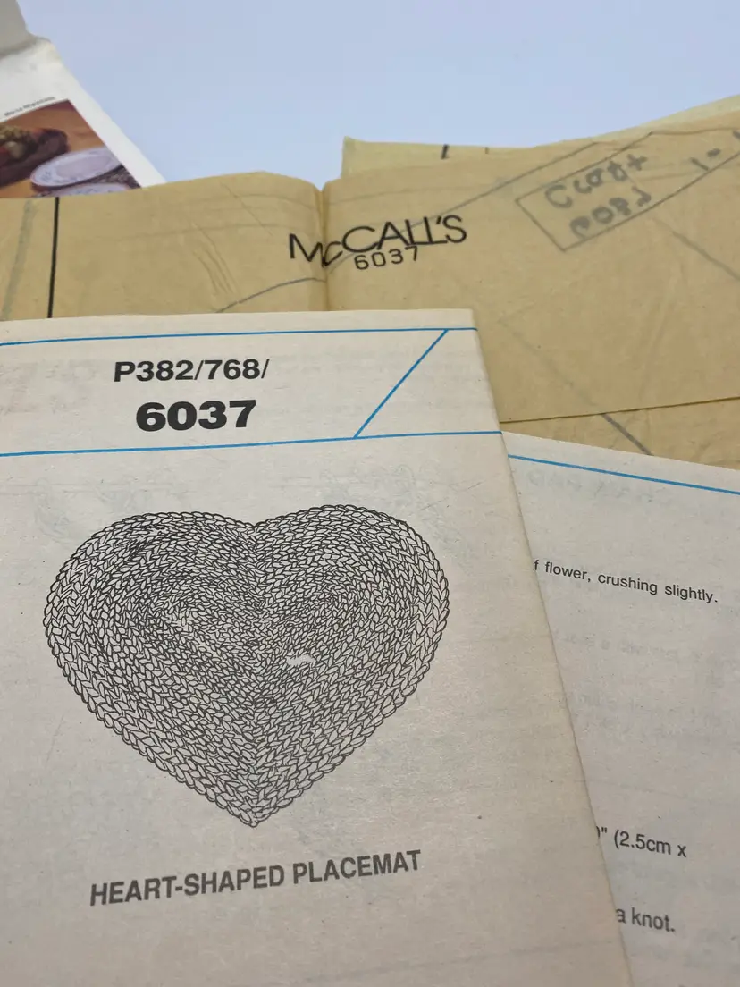 Items to be made with patterns: Heart shaped placemat Napkin Ring Large and small napkin Large and small round basket Heart shaped basket Scatter rug Round Chair Pad