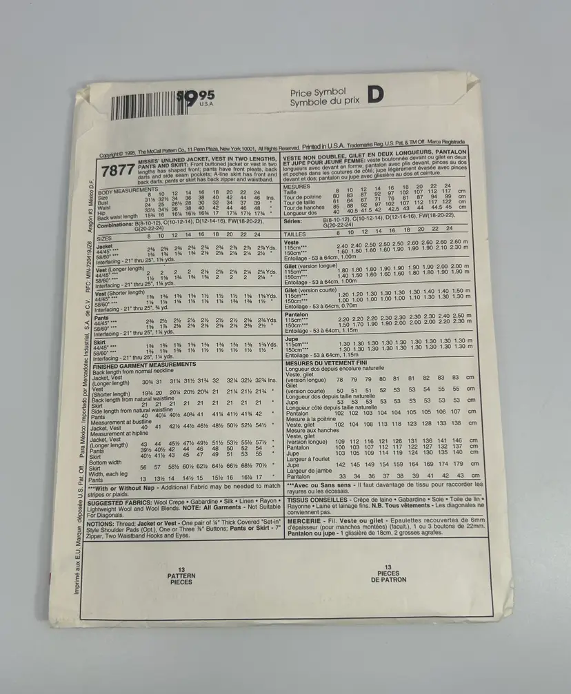 McCalls Pattern #7877