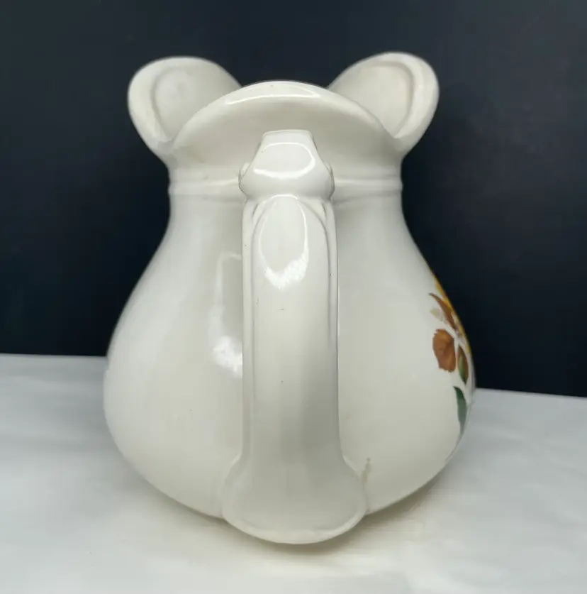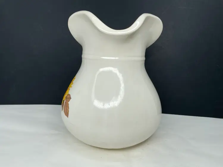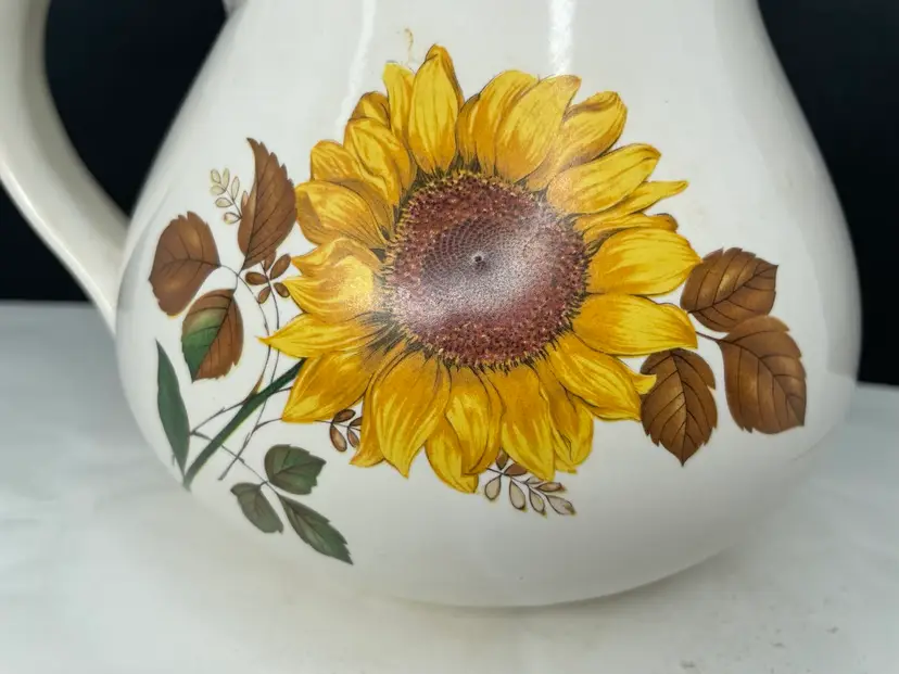 Crafted in the United States during the 1960s, this original piece is made of glossy ceramic and has an impressed backstamp. Transfer sunflower design. Despite its vintage status, it is in excellent condition and has been well cared for over the years. Whether you're a collector or just looking for a unique and charming piece of pottery to add to your home decor, this vintage McCoy pitcher is sure to impress.
