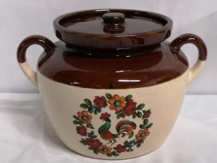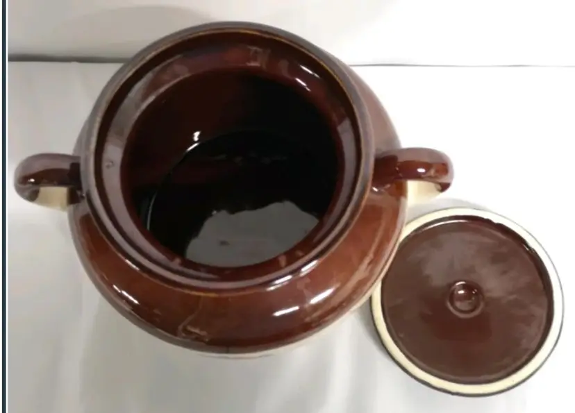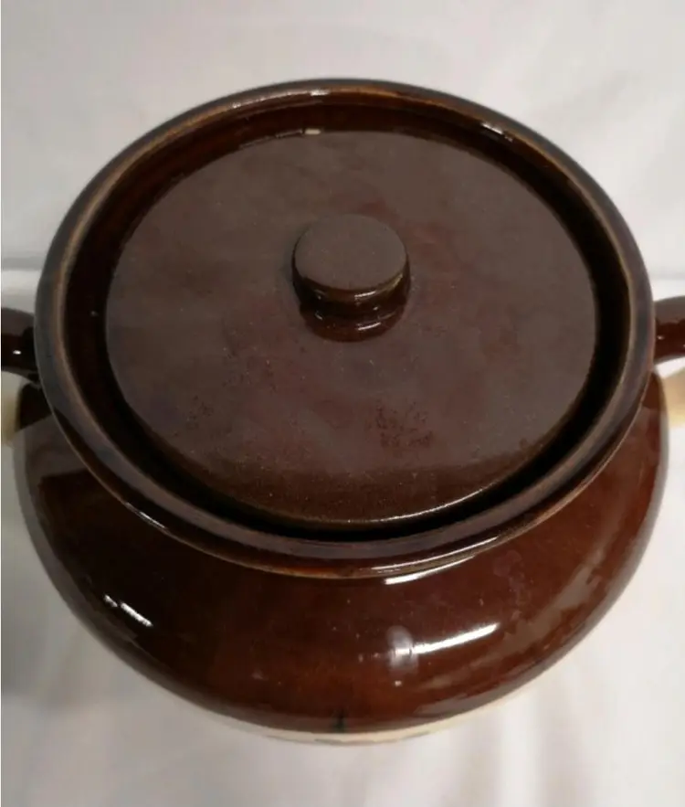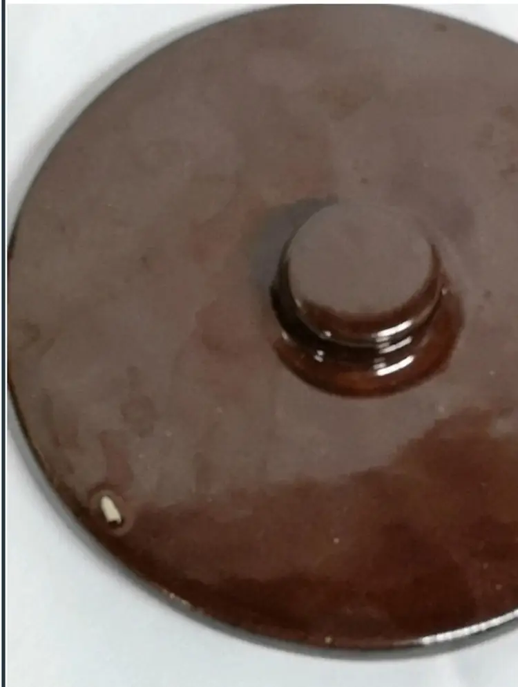 7 inches tall Unglazed spot on lid, no chips or cracks