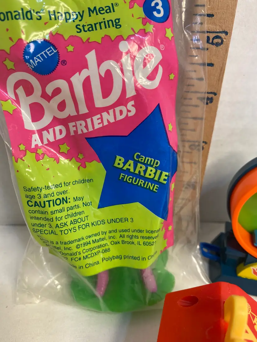 1994 Barbie camper in original wrapper. 1993 Hotwheel car and ramp in working order. Ronald McDonald 1994 car.