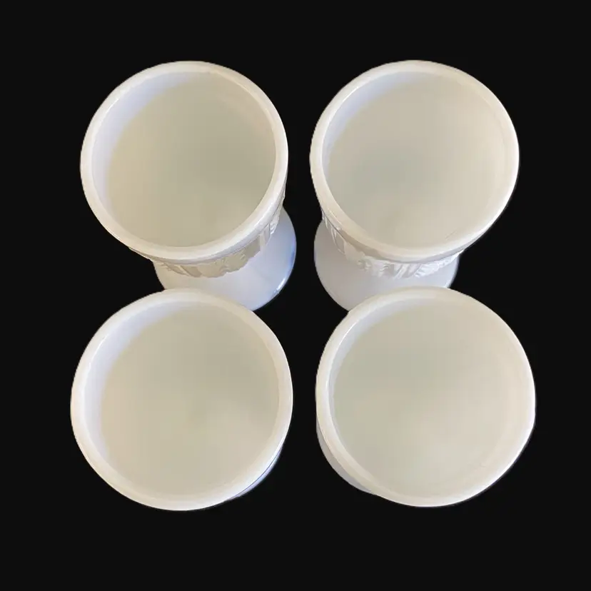 Measurements - 4 inches tall. Markings - no markings - they originally came with a green paper label that said "Early American Milk Glassware by McKee" which have been lost over the years. Condition - excellent with no damage.