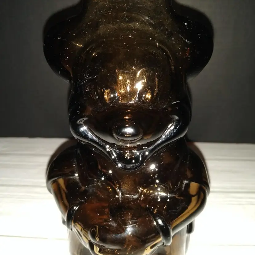 Vintage MCM 1970’s Walt Disney Productions Mickey Mouse Club Glass Piggy Bank. Has some wear from age use and storage. Sold as is.