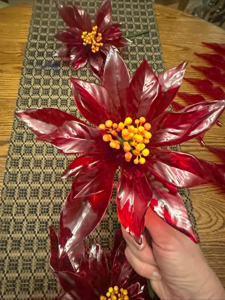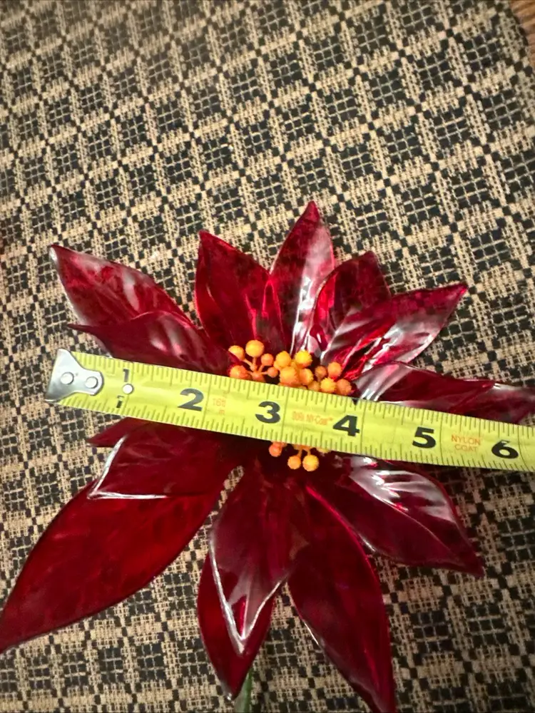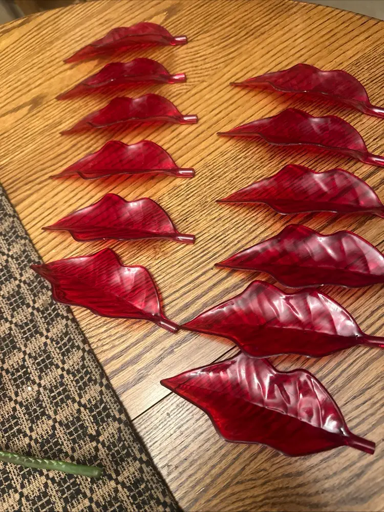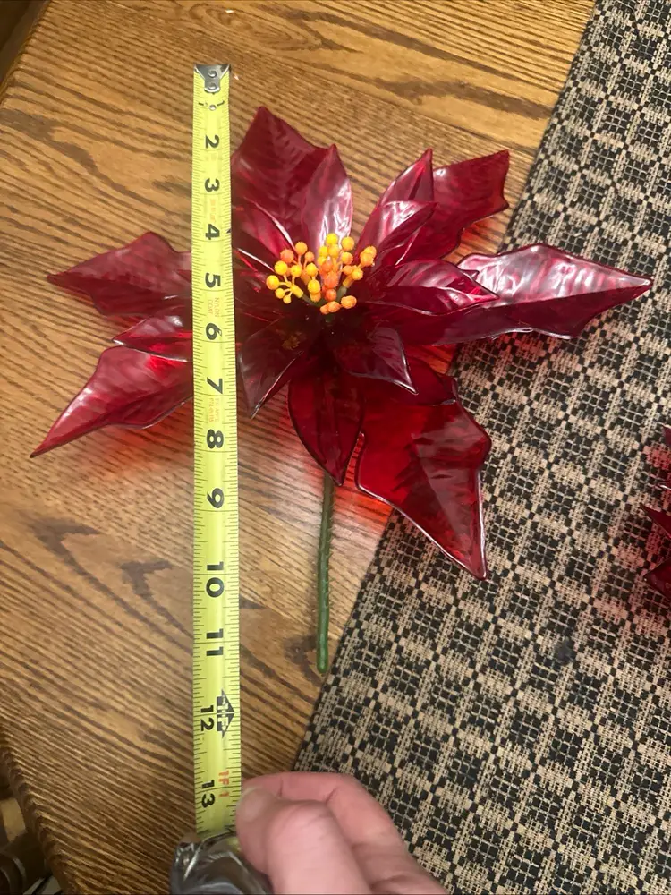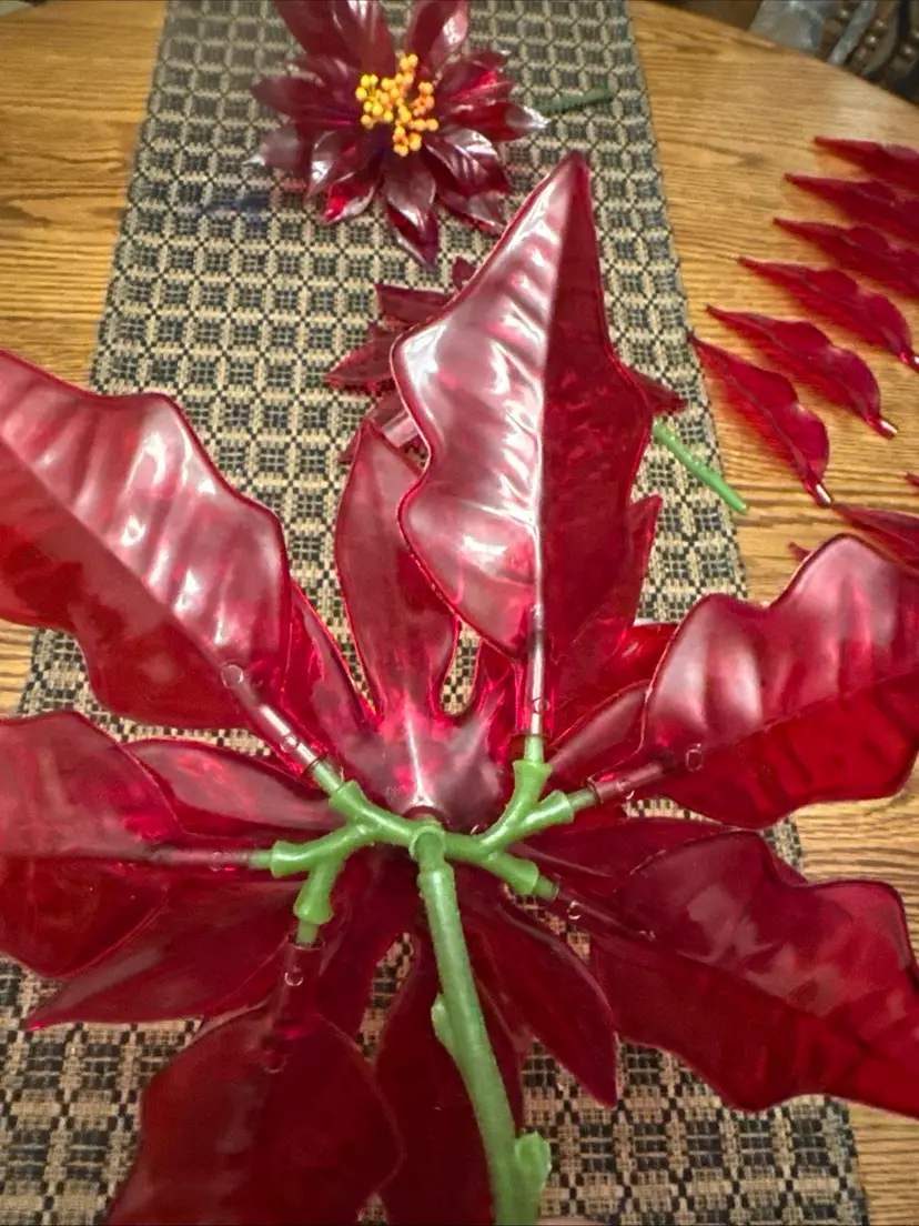 Vintage MCM Acrylic Lucite Christmas Poinsettia Flower Decoration Set Of 3