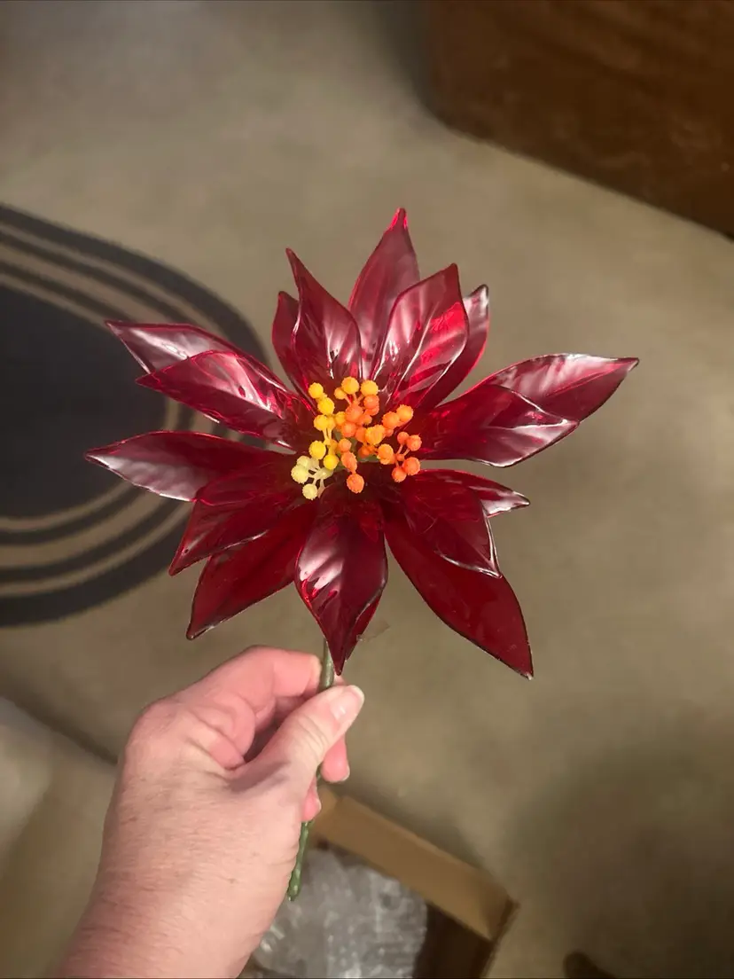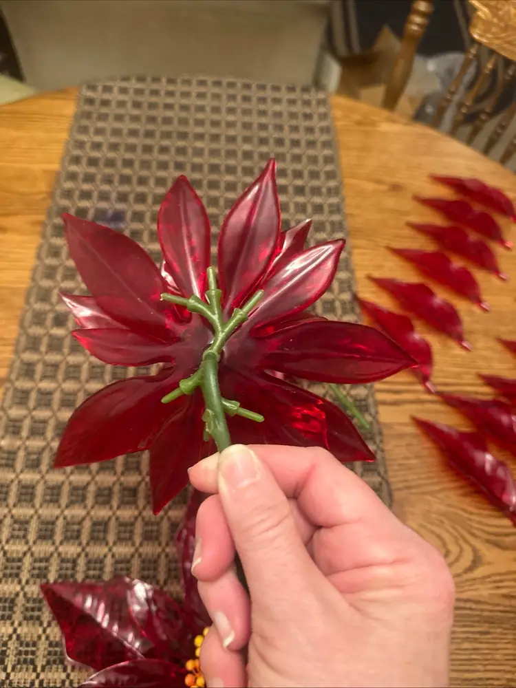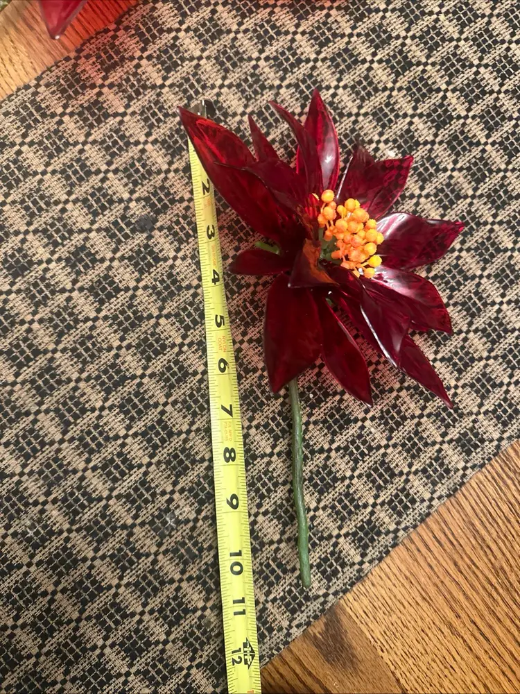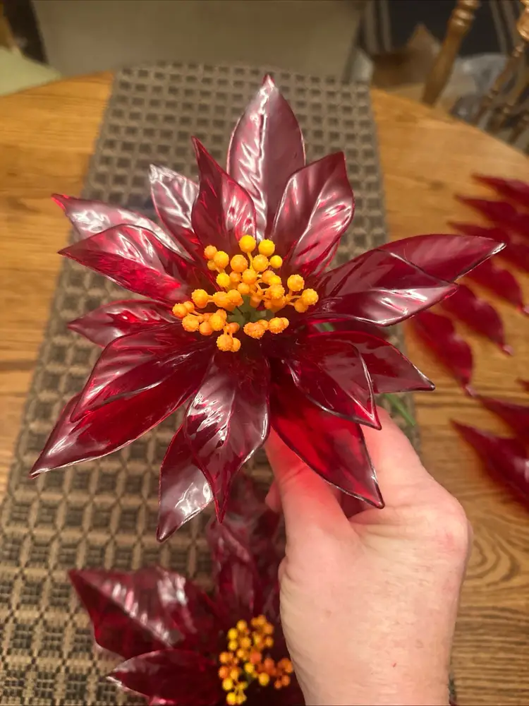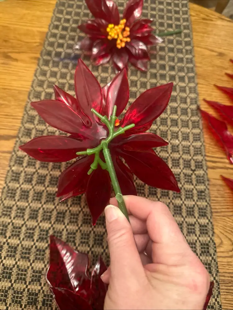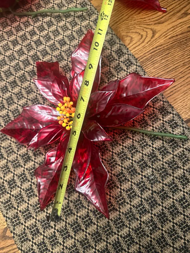 Vintage MCM Acrylic Lucite Christmas Poinsettia Flower Decoration Set Of 3