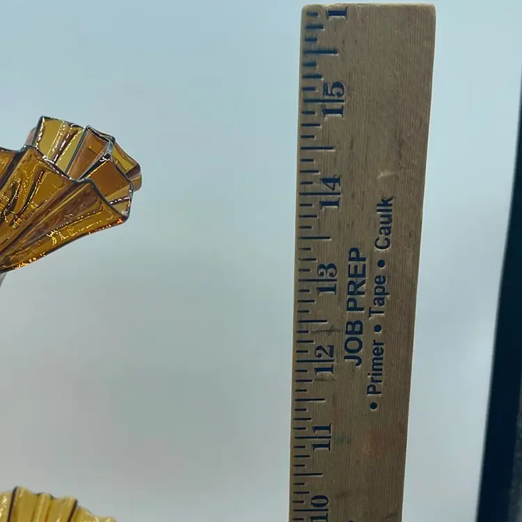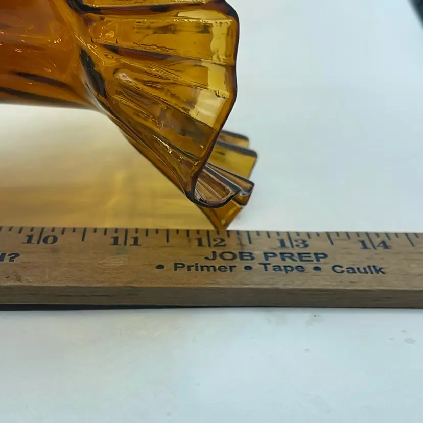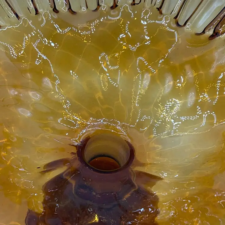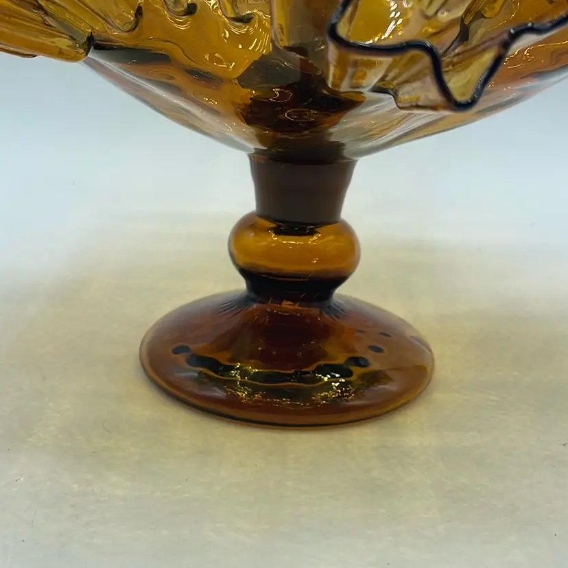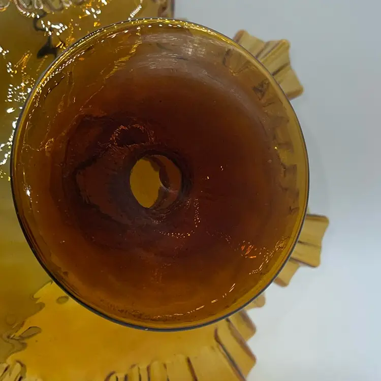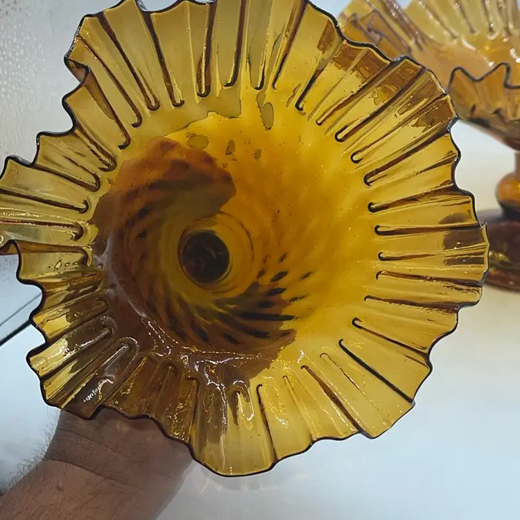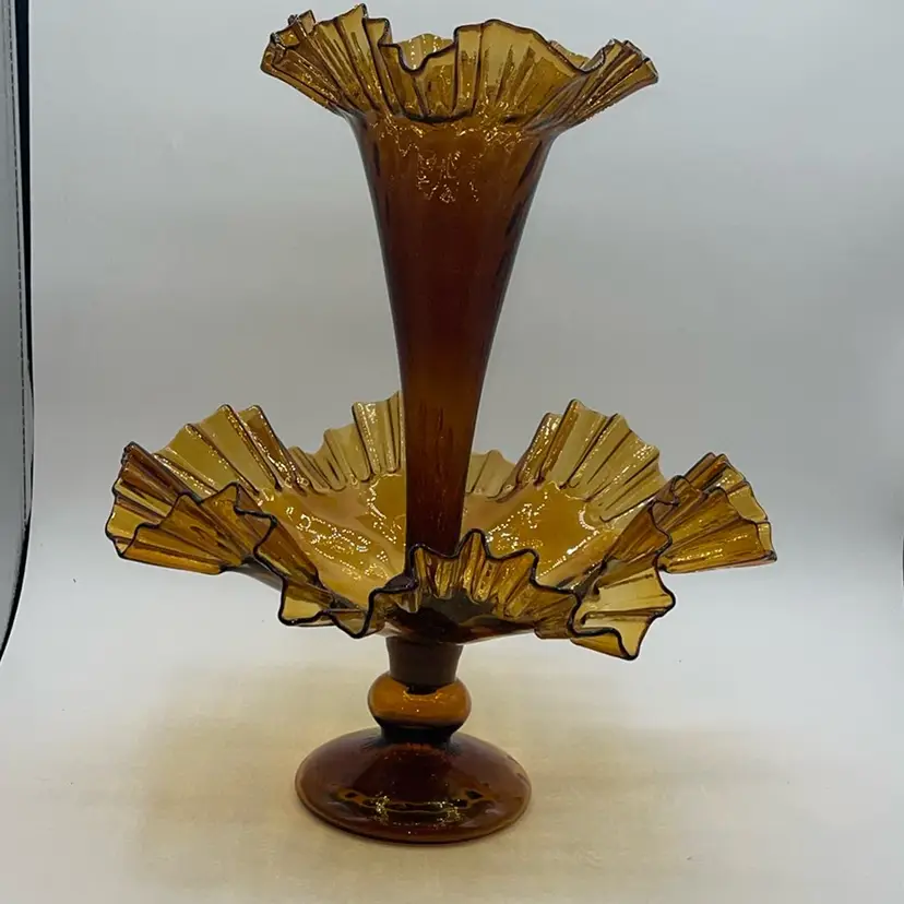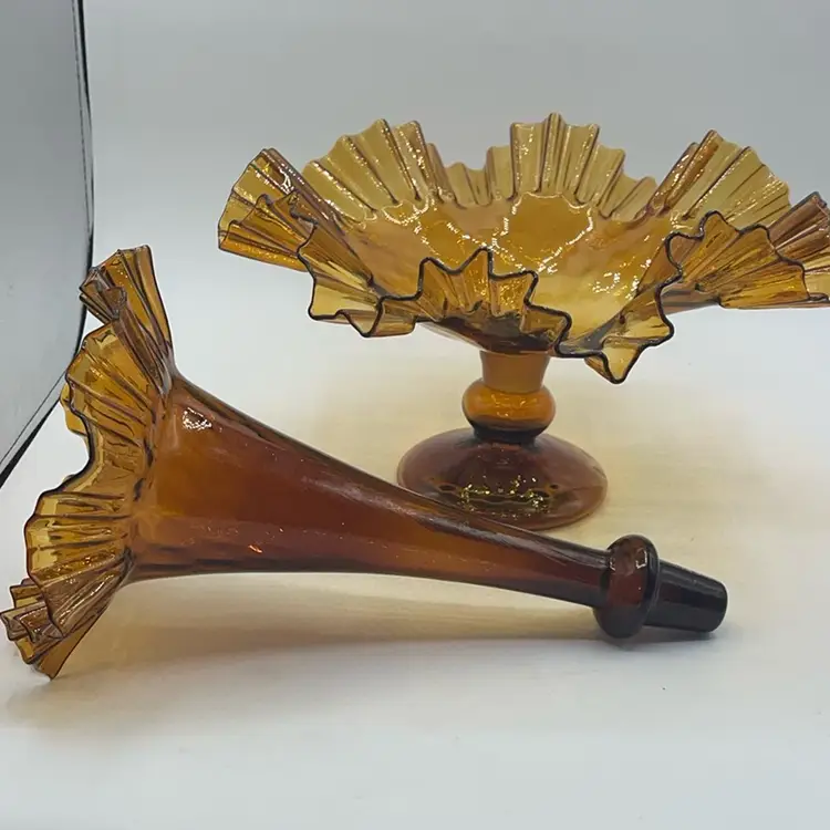 Vintage MCM Amber Empergne 2 Piece Fluted Bowl And Vase Handmade Blown Glass