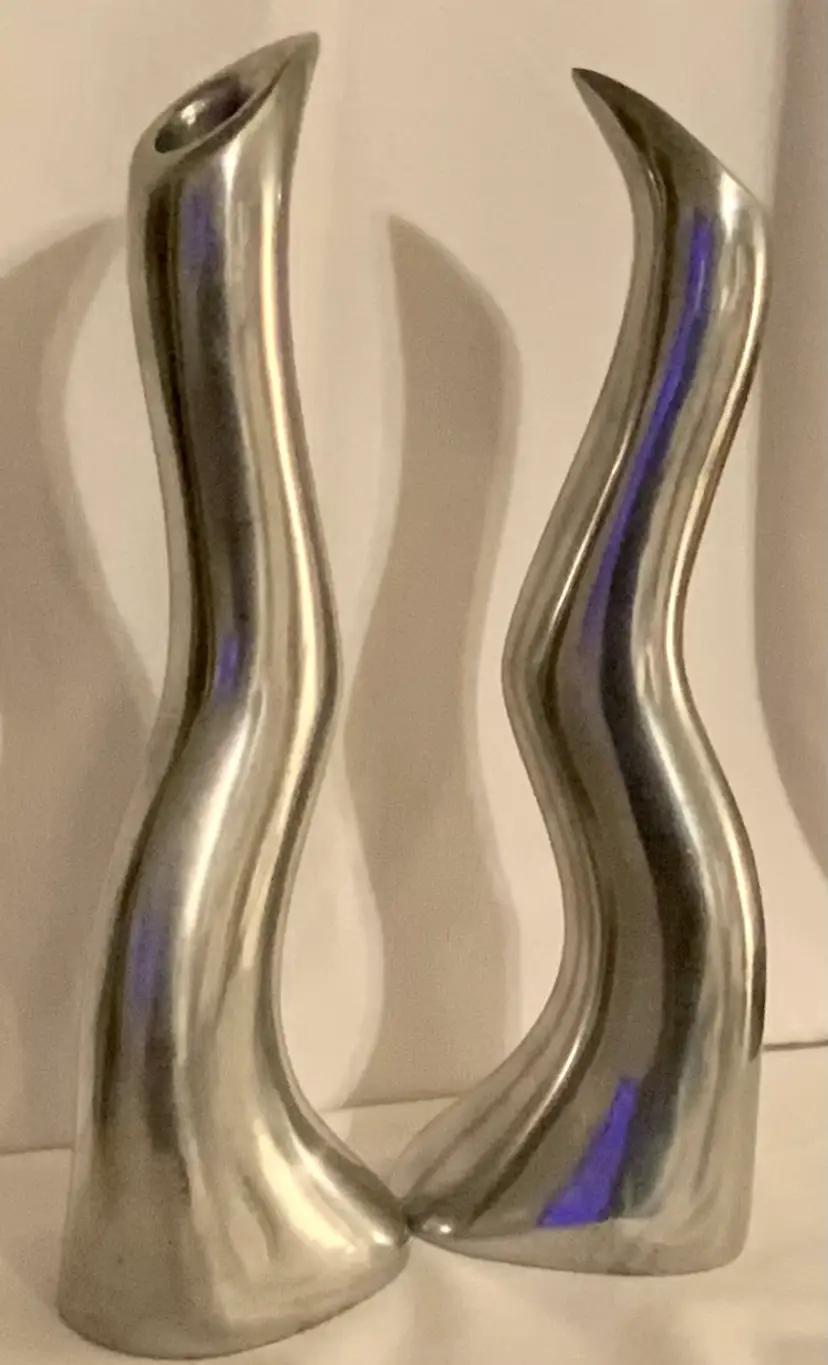 Vintage MCM Anna Efverlund solid aluminum candlestick holders, set of 2, measures 12x4. Beautiful for any room or occasion. Marked and original sticker.