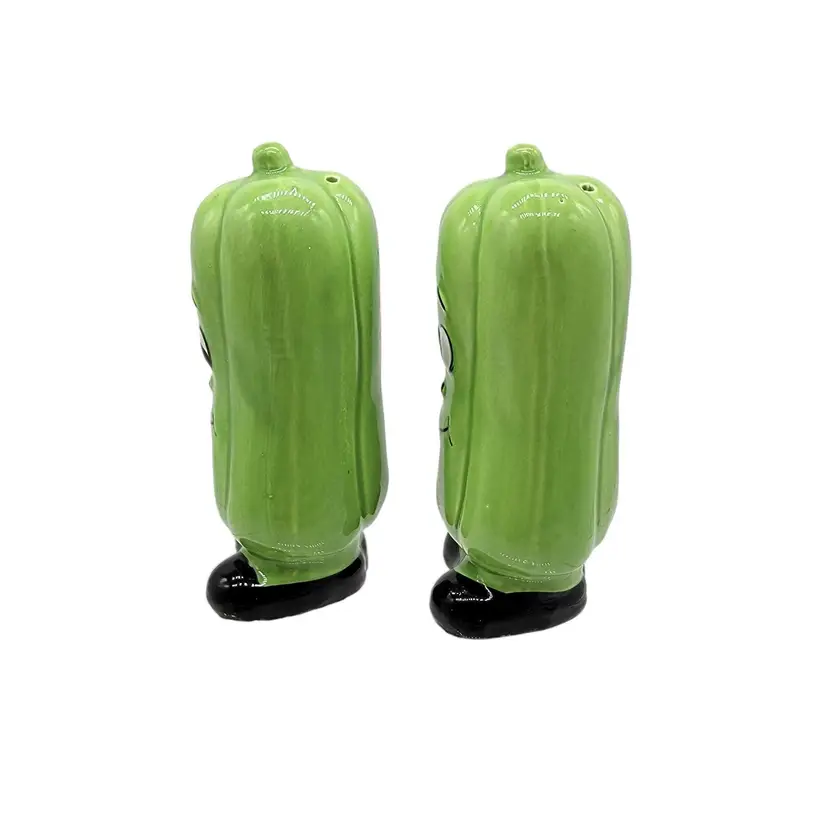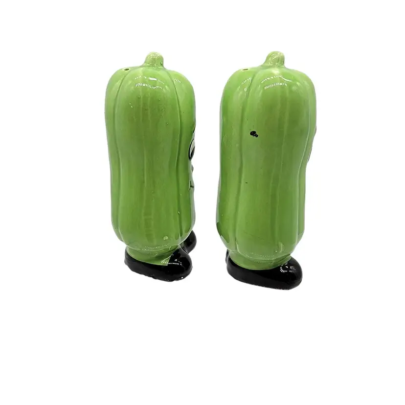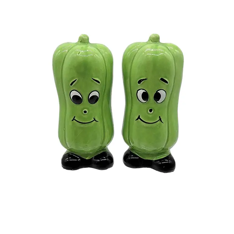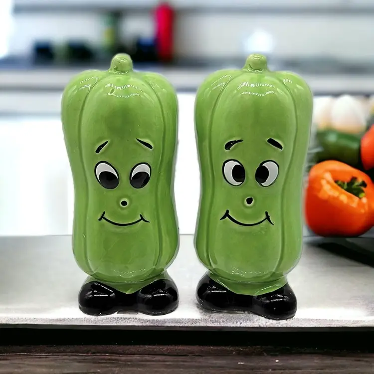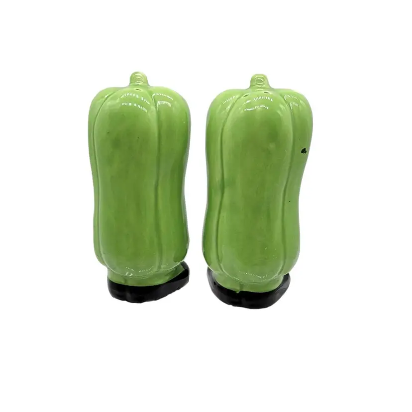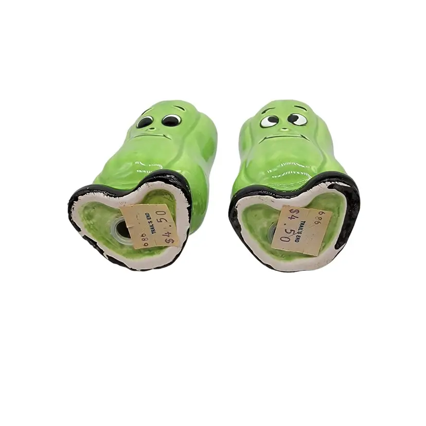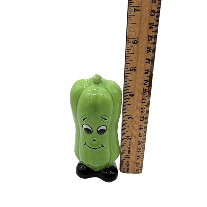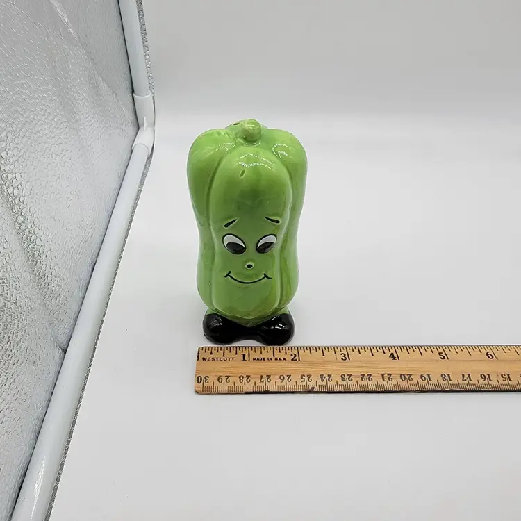 Vintage MCM anthropomorphic green bell pepper Japan salt and pepper shakers. In fantastic shape with their original price stickers.