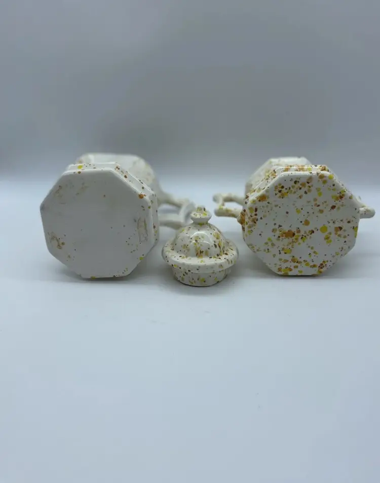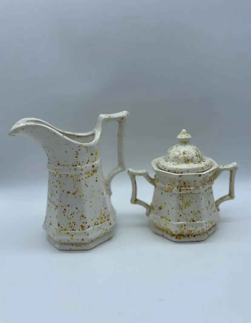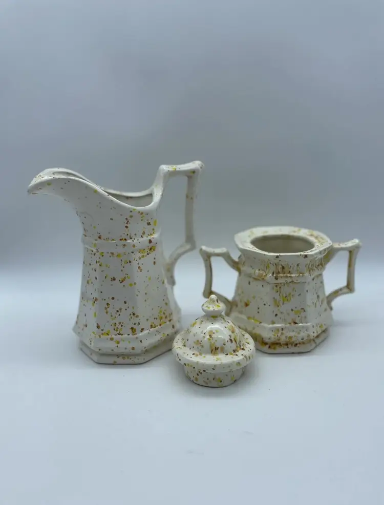 Vintage MCM Arnel’s Ceramic Splatter Drip Glaze Paint Pitcher & Sugar Jar