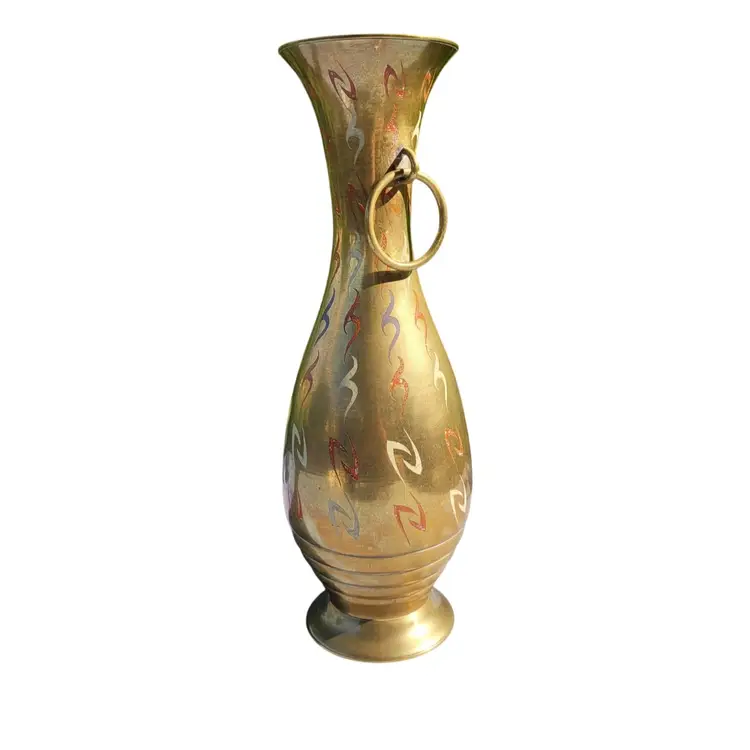 Elegant vintage brass vase featuring intricate etched designs and a charming handle. Stands 13.75" tall, perfect for adding a touch of classic style to your home decor. Shows some signs of wear, enhancing its vintage appeal. 💝 All items are packaged with care to ensure safe delivery #nosadmail ✴️ Follow my Facebook page & IG for more curated vintage finds! ⚡️ #MrEccentrics #vintagecurator #vintagedecor