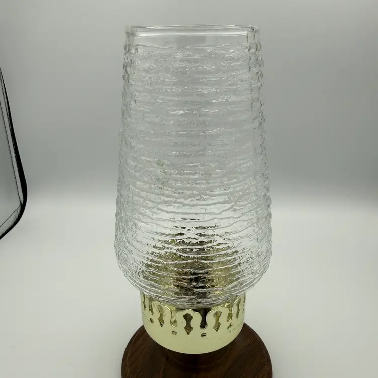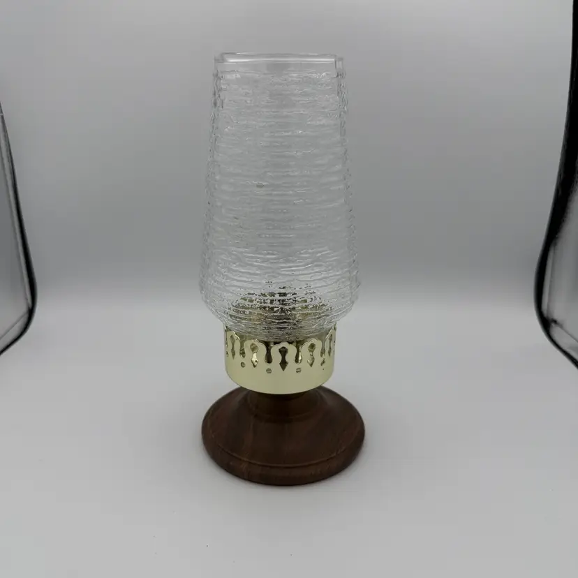 Vintage MCM Candle Holder. Metal Base Glass Shade. Stamped Nu Trend. Holds Tapered Candle. Stands 9" Tall. Overall Good Condition.