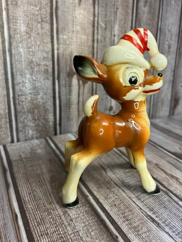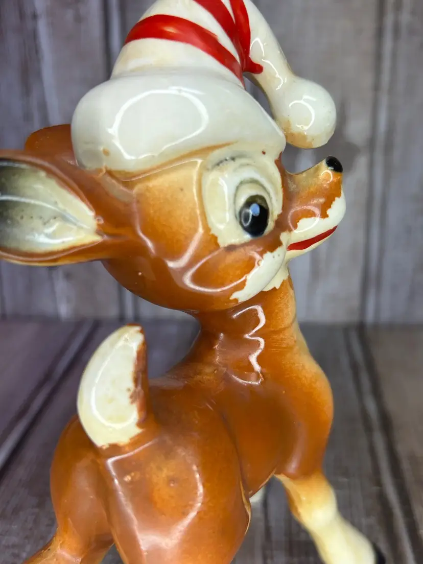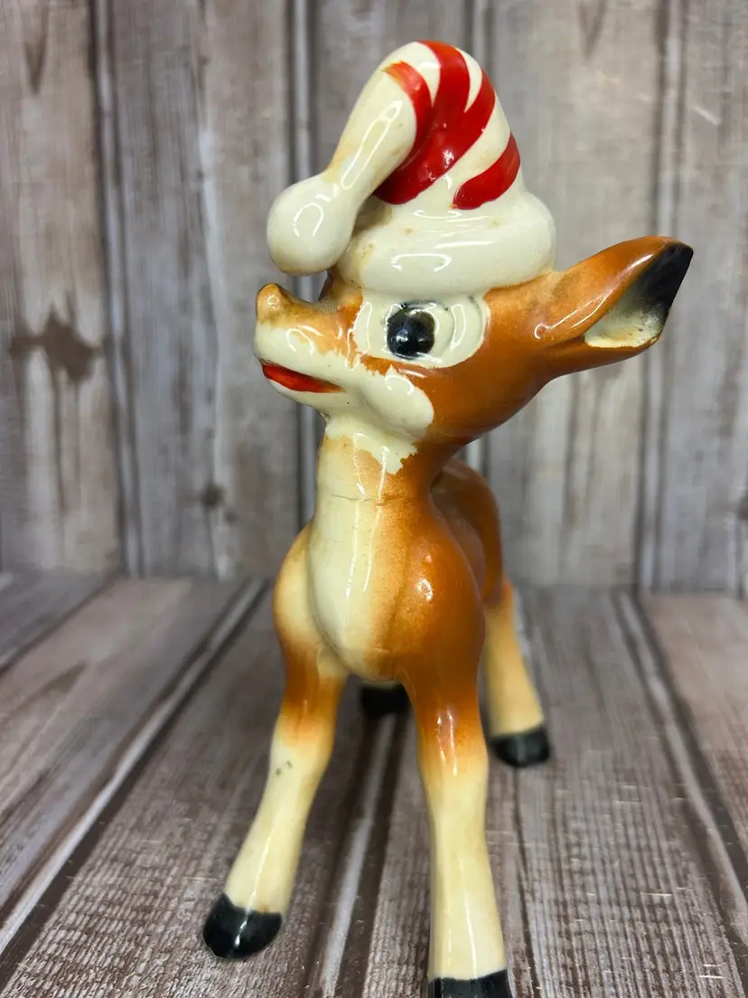 EUC Very Rare Vintage MCM Ceramic Christmas Reindeer Deer Stocking Hat 6 1/4" Tall!.