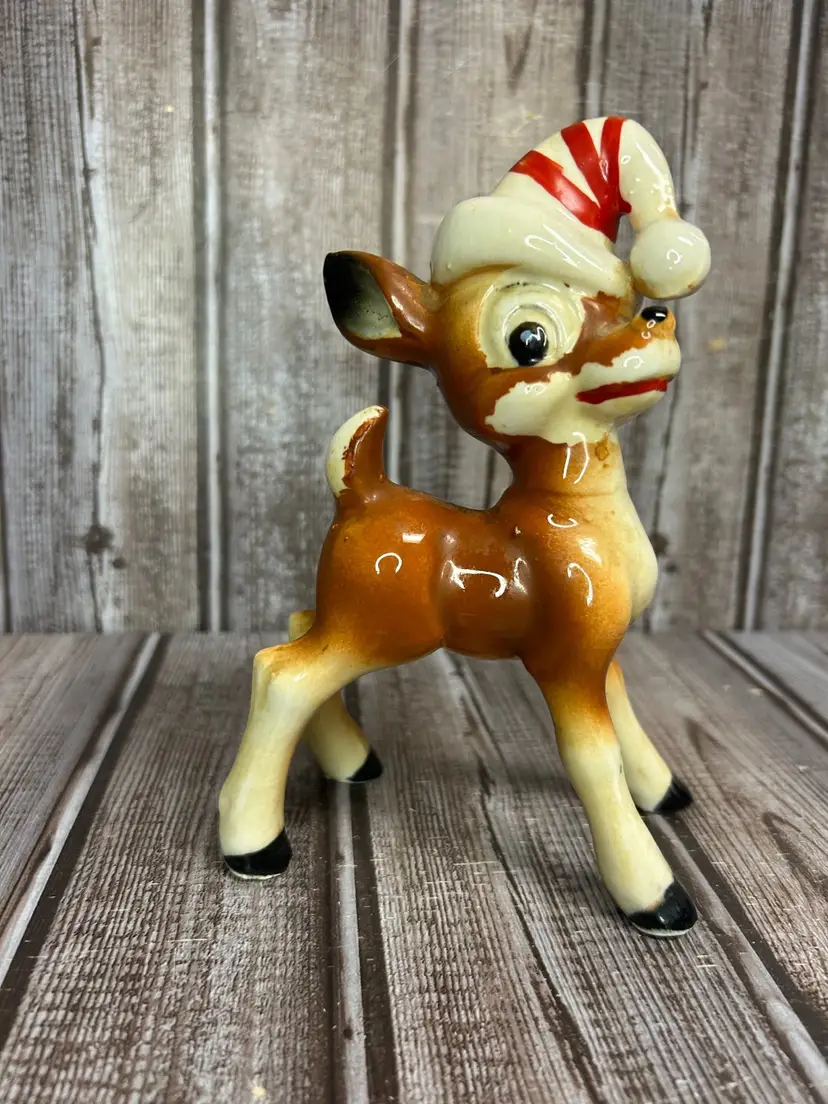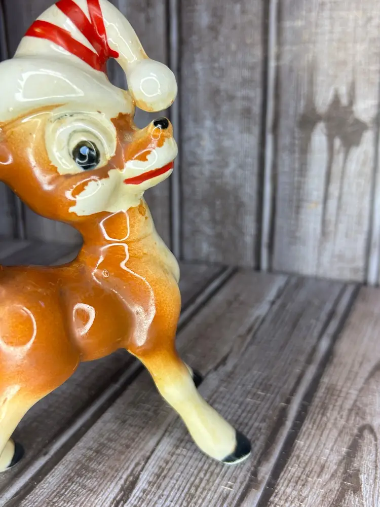 Very Rare Vintage MCM Ceramic Christmas Reindeer Deer Stocking Hat 6 1/4" Tall!