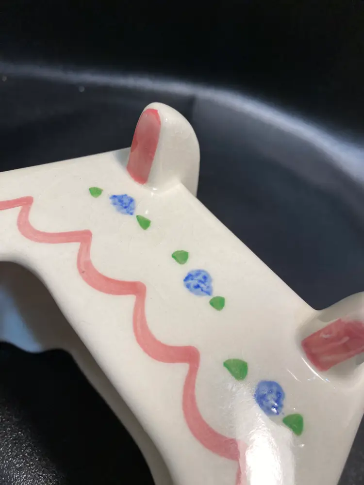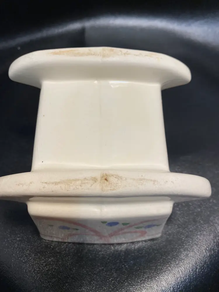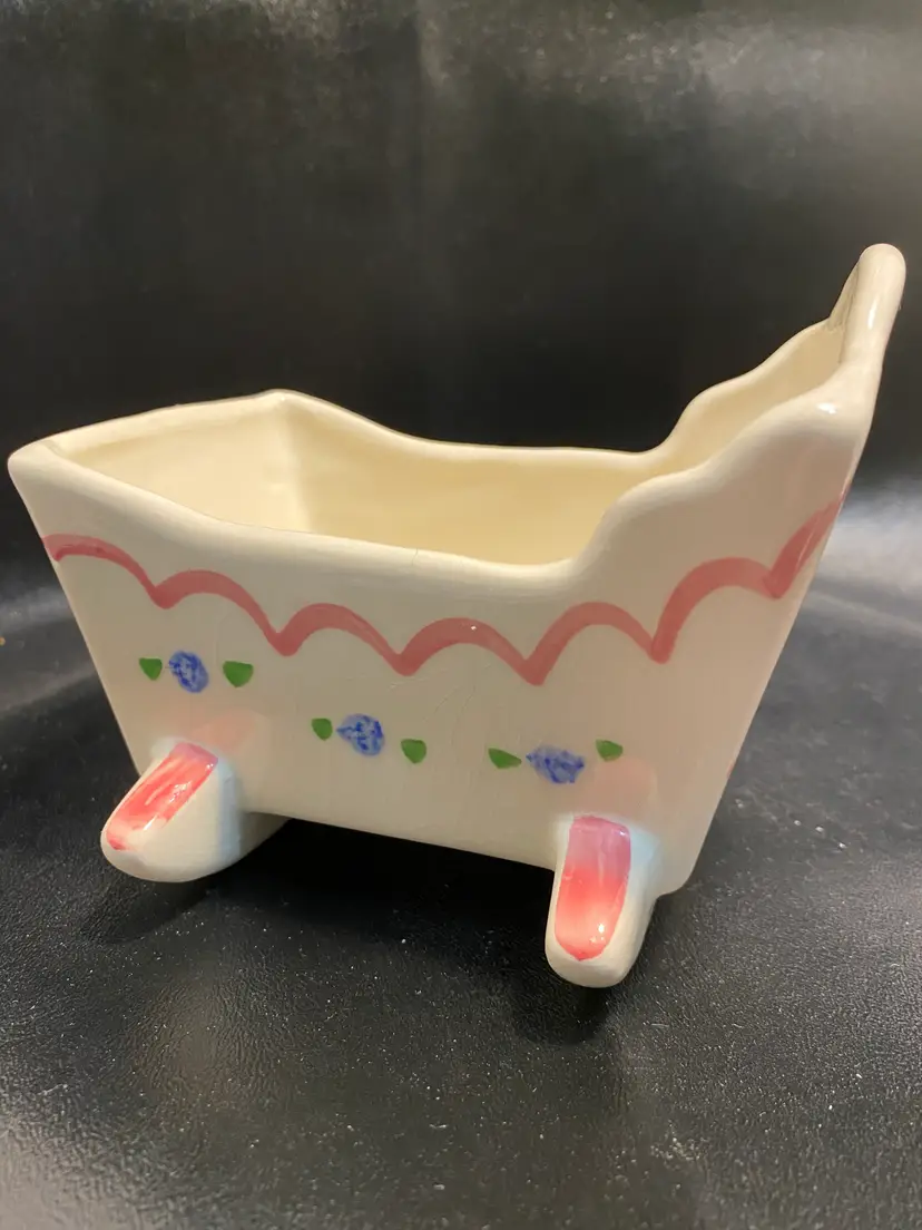 In great condition, no chips or cracks, design in good condition. Has some crazing due to age. Measurements are 4 1/2” tall, 5” long, 4 7/8” wide, 1 3/4” deep. Great for succulents. There are no drainage holes.